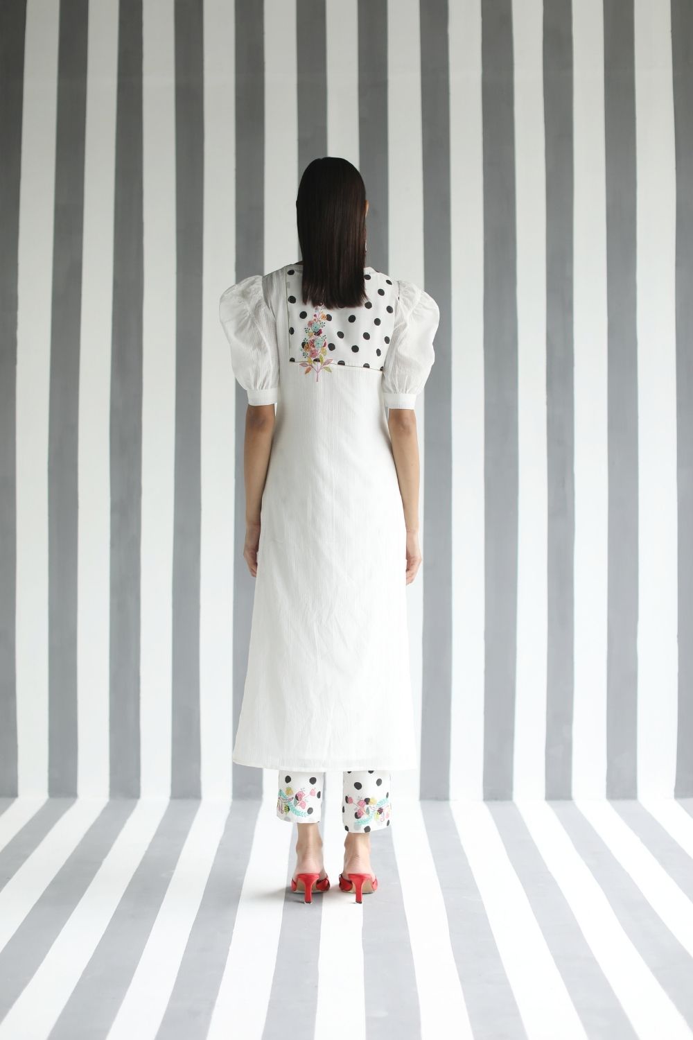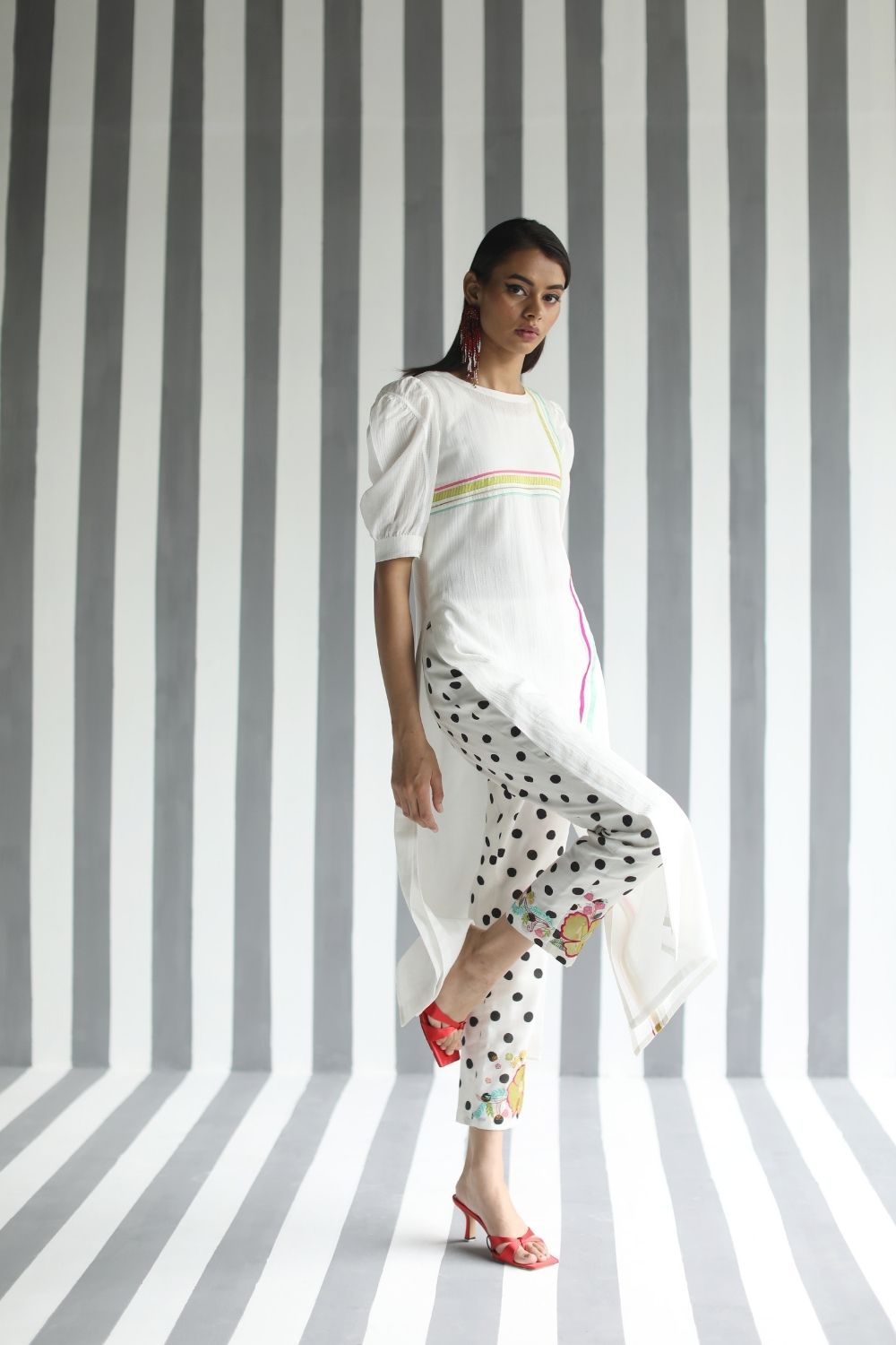 Organic Cotton kurta with appliqué work paired with intricate Embroidered Printed pant.