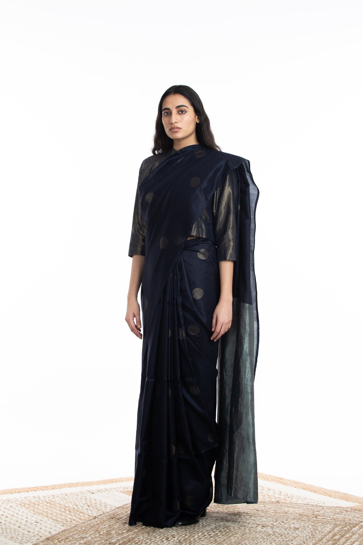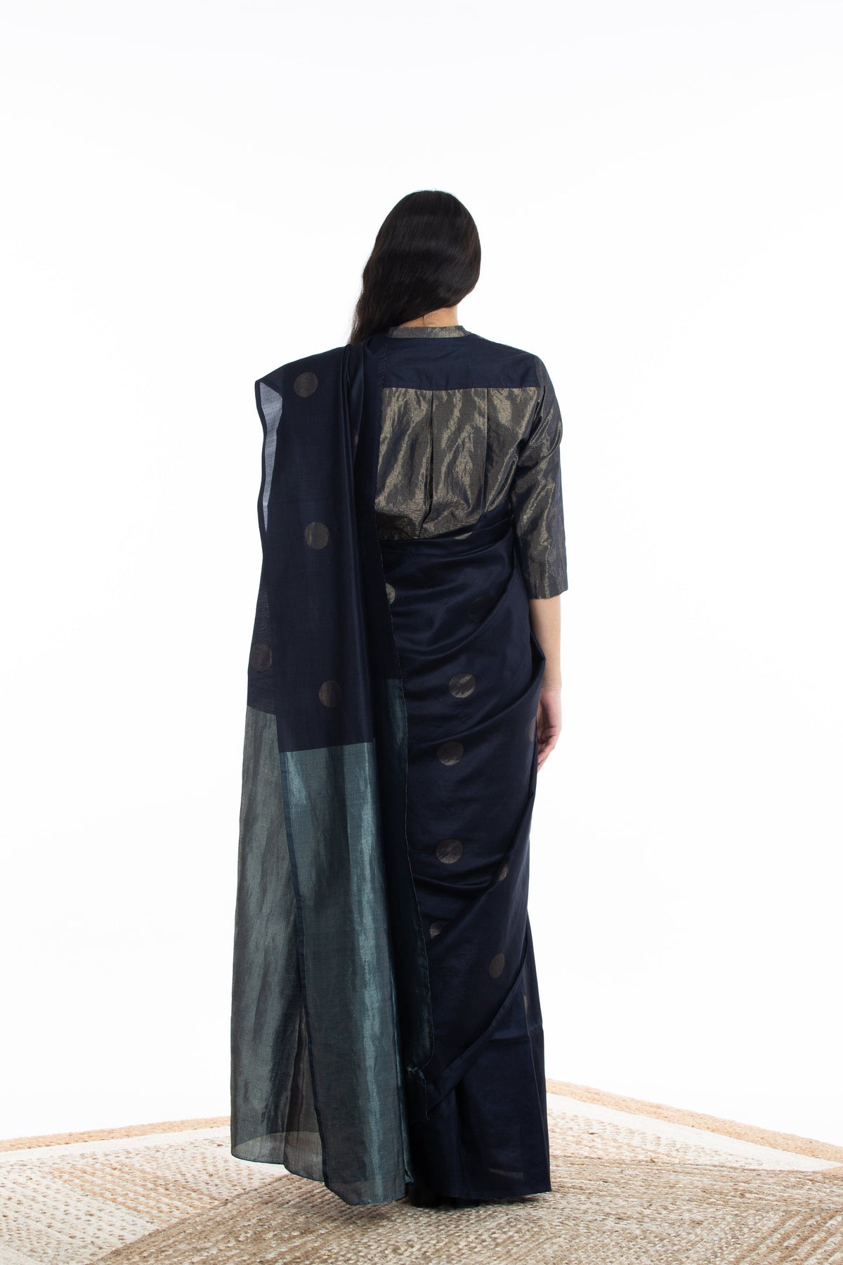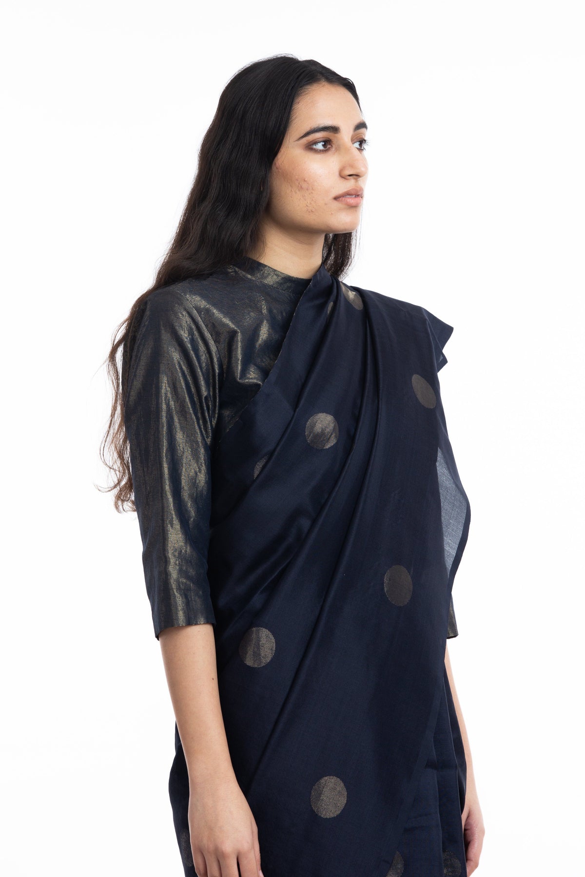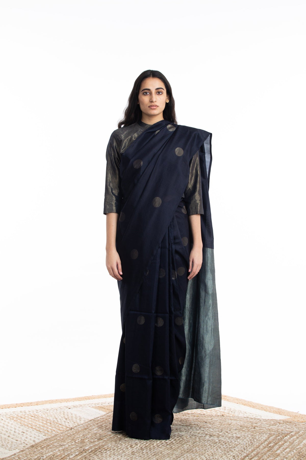 is an innovative and exciting blend of materials.Circular motifs are woven with Zari using Jaamdani weaving tradition.