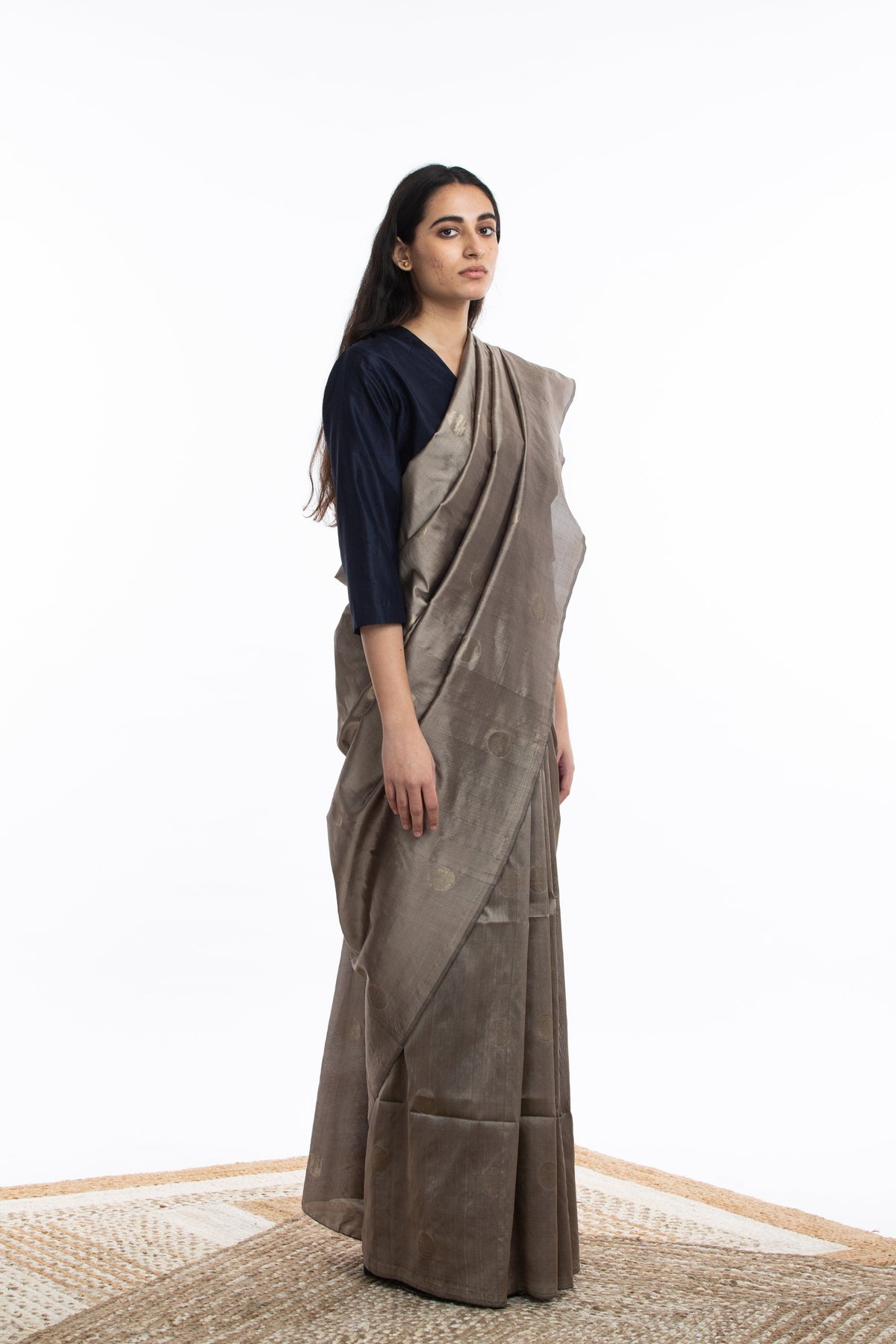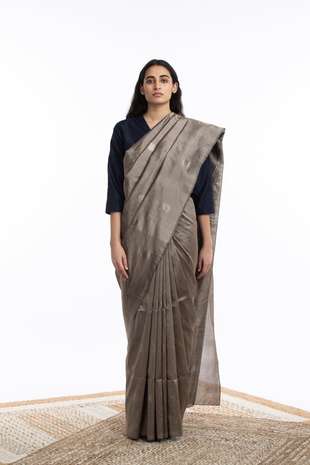 Handwoven in fine silk & zari on a traditional loom in eastern India this