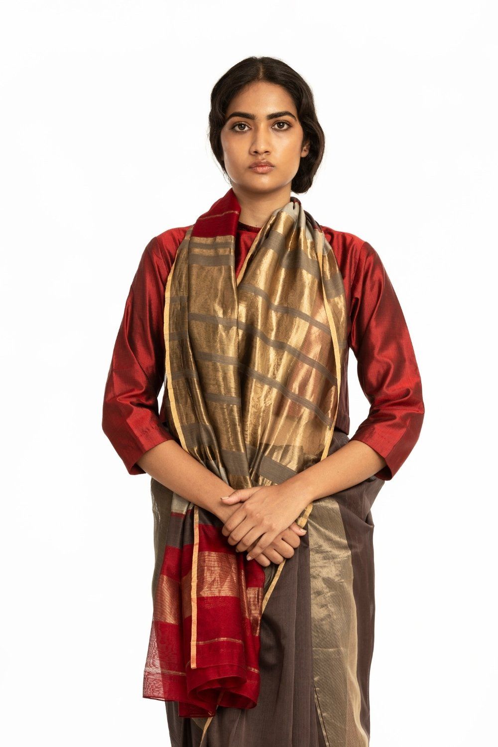 Handwoven in Cotton & Zari on a traditional loom in eastern India this