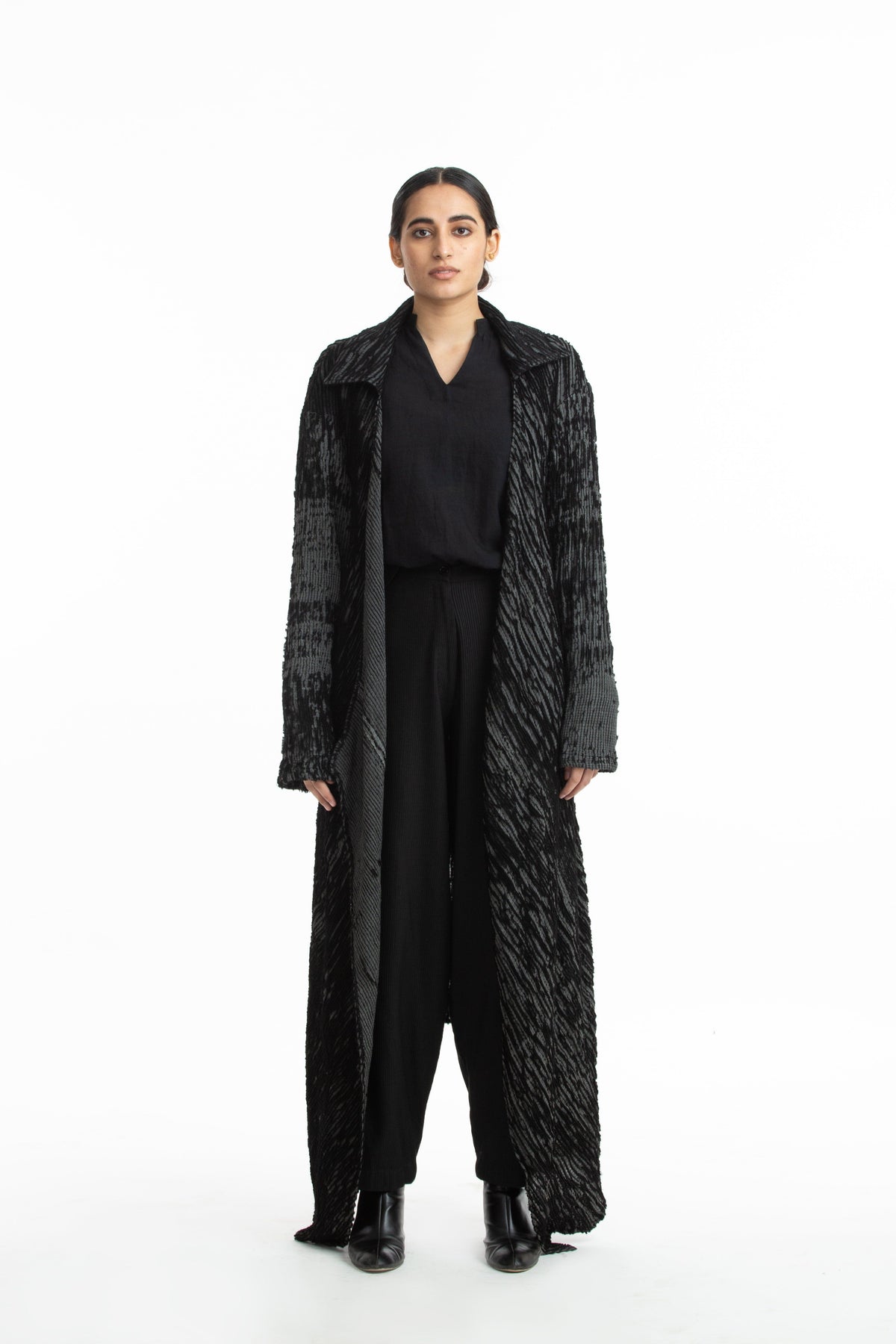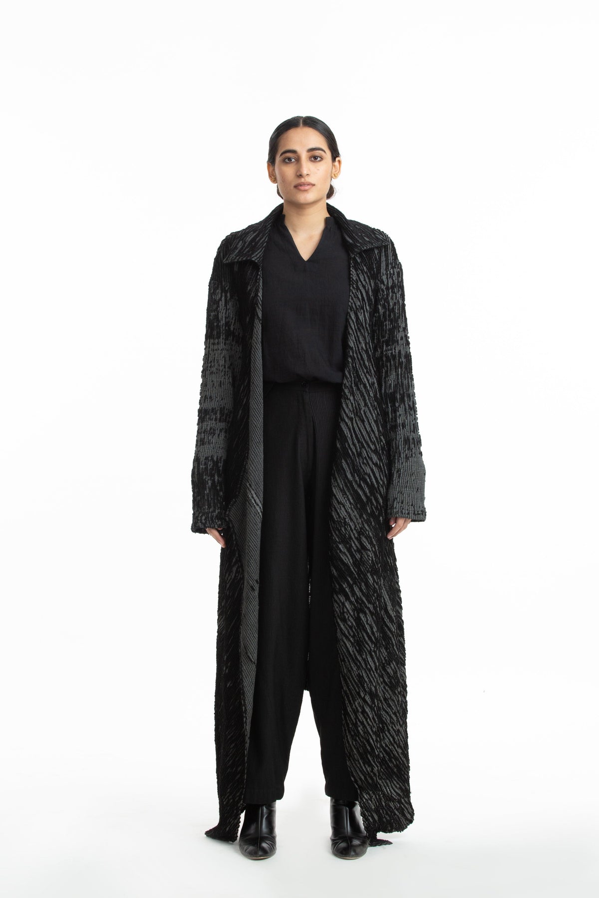 Handwoven in Merino Wool & Silk, this Coat makes for a warm and luxurious winter wear.