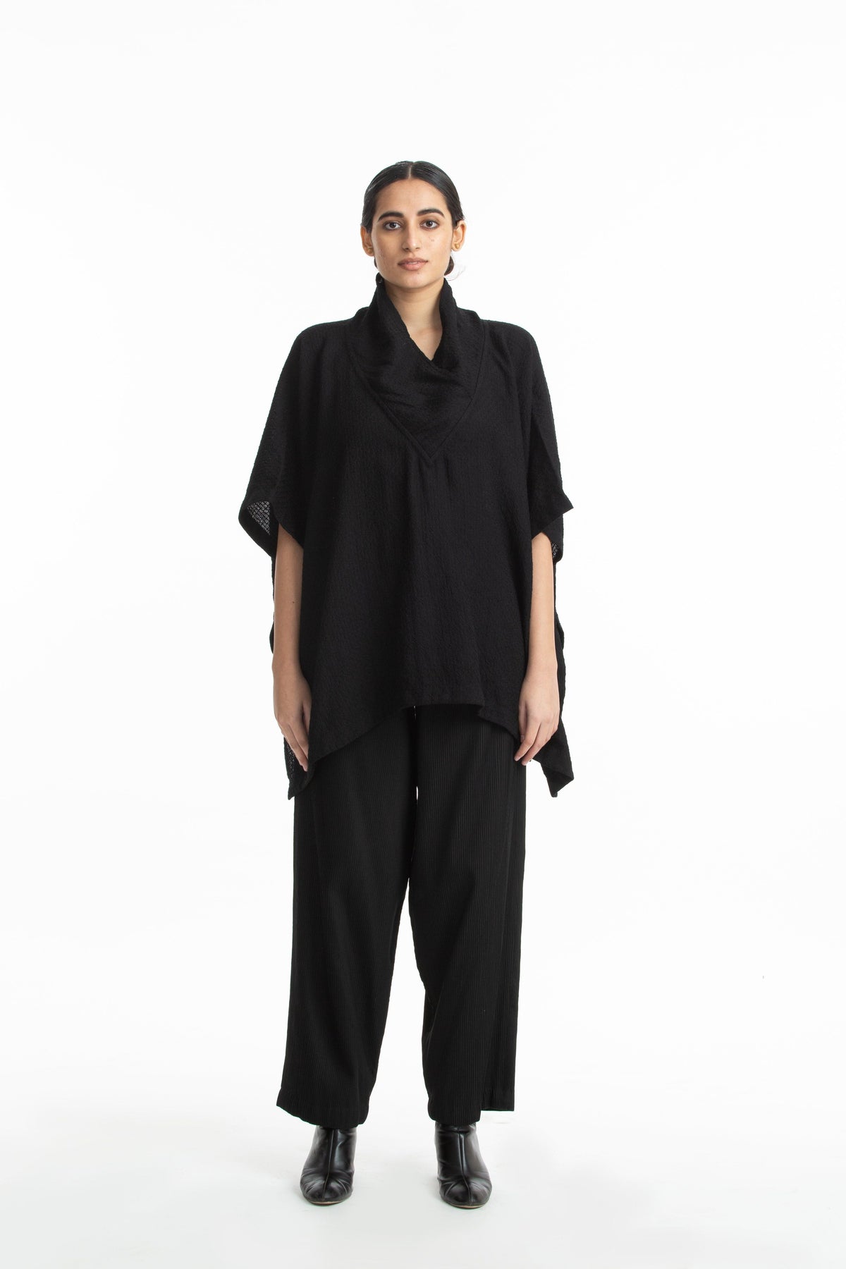 loom in eastern India.It has a loose silhouette and a draped neck .