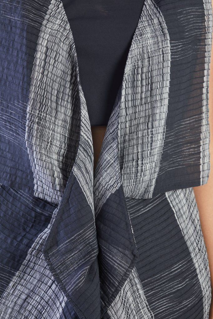 Handwoven with cotton, this cape makes for a perfect outerwear essentail and is an akaaro classic. It can be dressed up or down making this cape a wardrobe essential.The fabric is pintucked on machine to give it a texture .An akaaro bestseller the fabric is designed by AKAARO & is made with 100 % tiedyed cotton , hand woven in West Bengal , India.
