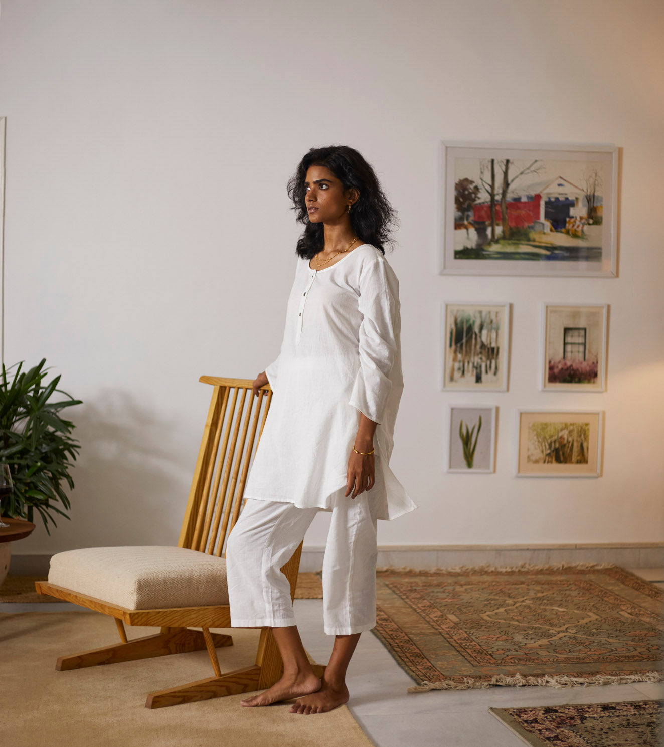 Each piece is grounded in India’s textile heritage yet designed for a woman who moves easily between cultures and climates. The brand’s commitment to homegrown cotton, artisanal processes, and clean, breathable shapes has made these garments not just beautiful, but deeply wearable.