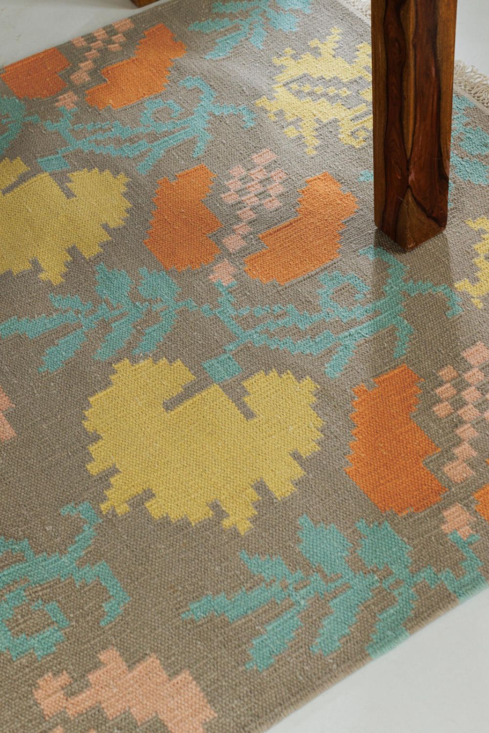 Wash Care Instructions: Vacuum, spot cleaning once in two weeks. Professional cleaning by rug experts recommended. Do not tumble dry. Please rotate the dhurrie at regular intervals to equalise wear. Do not pull any yarn out of the rug, simply trim it with scissors.