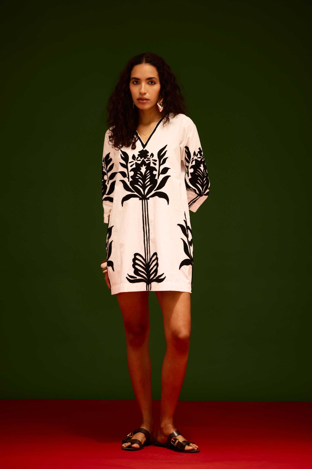Ivory Cotton Shift Dress with Black Tulip Thread Embroidery