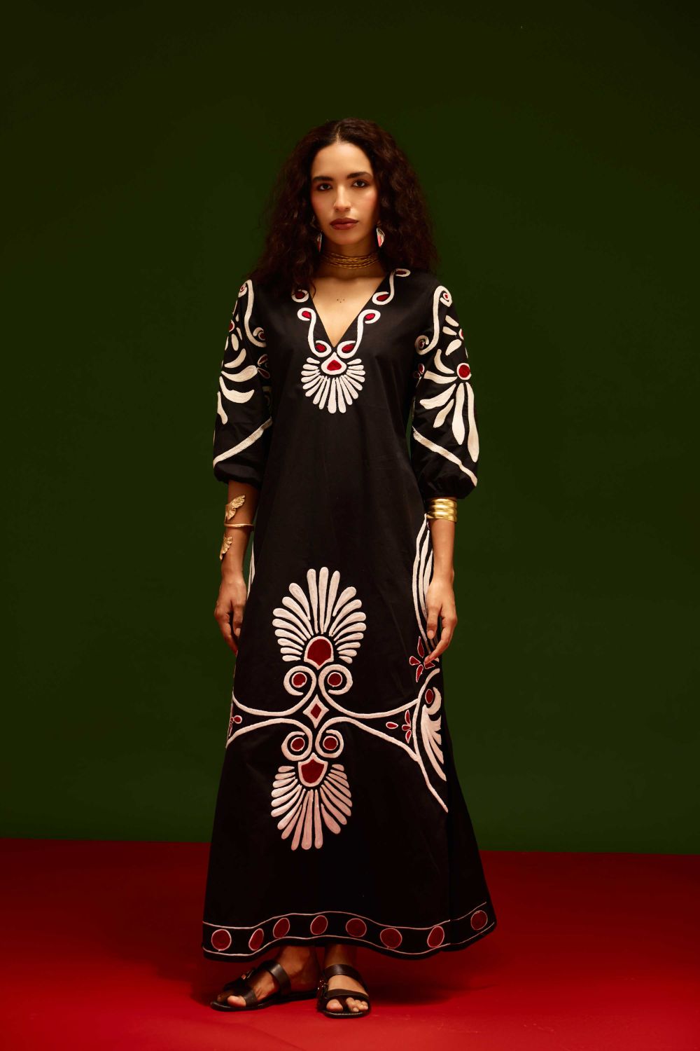 Midnight Blue Cotton Botanical Maxi Thread Embroidered Dress