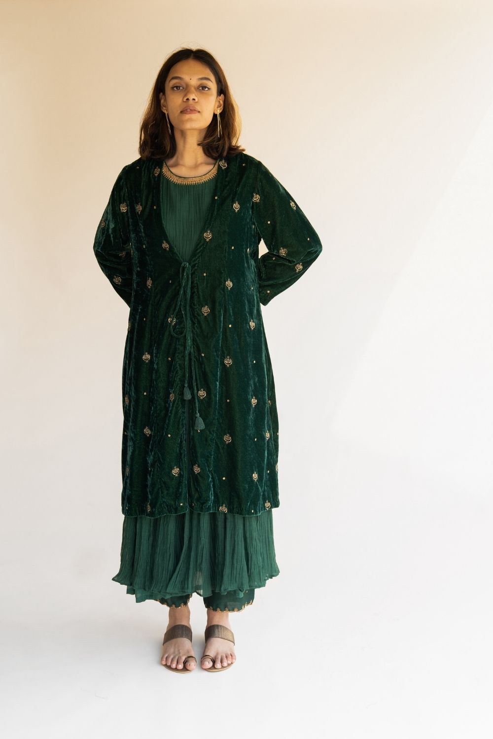 Fastening in the front with a length to abide by, this jaakat offering is a means to add layers with pomp and show.