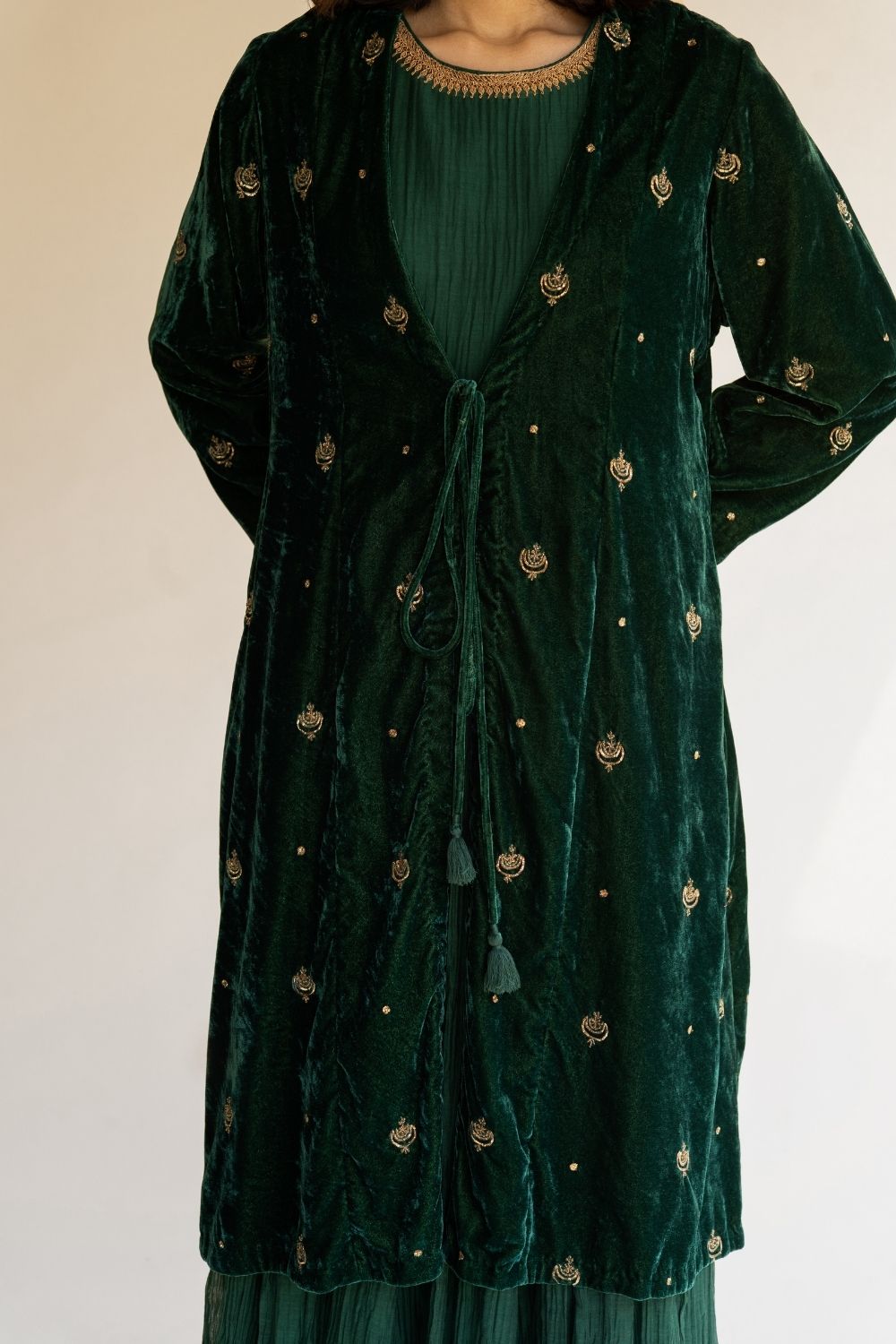 The label embraces the rich artisanal heritage of Mughal India through its offerings. The nizams and the Persians enamored the world with their own unparalleled craftsmanship. The intention is to mould that into timeless design through modern techniques and fluid silhouettes.