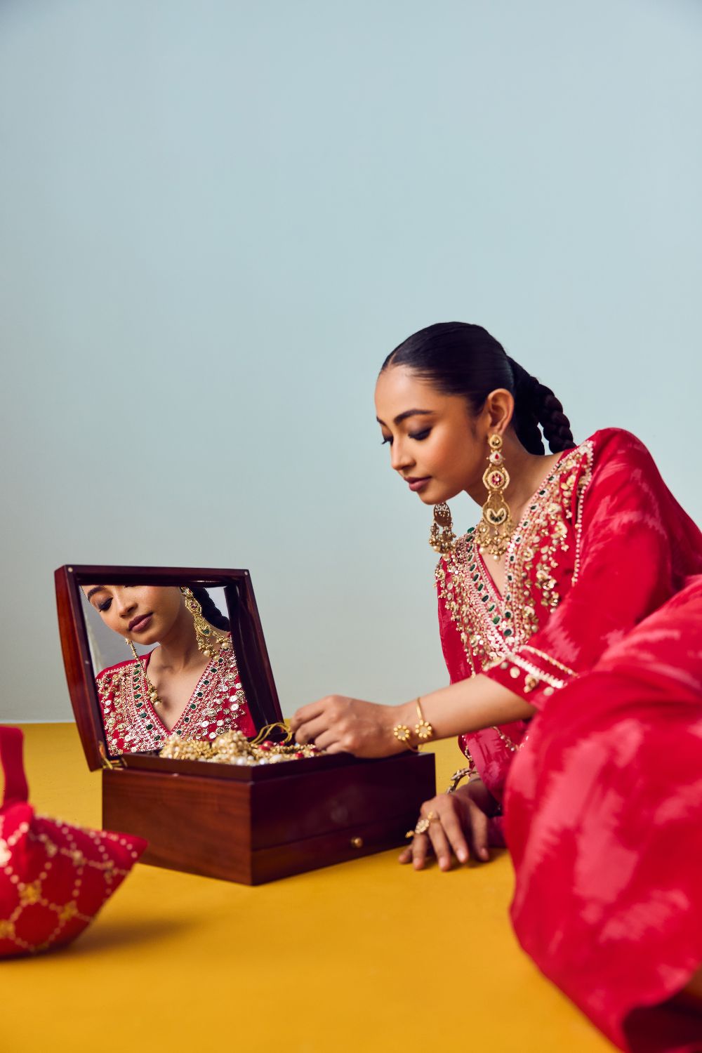 Preeti designs for real lives — for morning coffees, for festive evenings, for destination weddings, for days when you want to feel rooted but still unmistakably yourself. Her collections carry a contemporary spark while holding firmly to the culture that shapes them.
