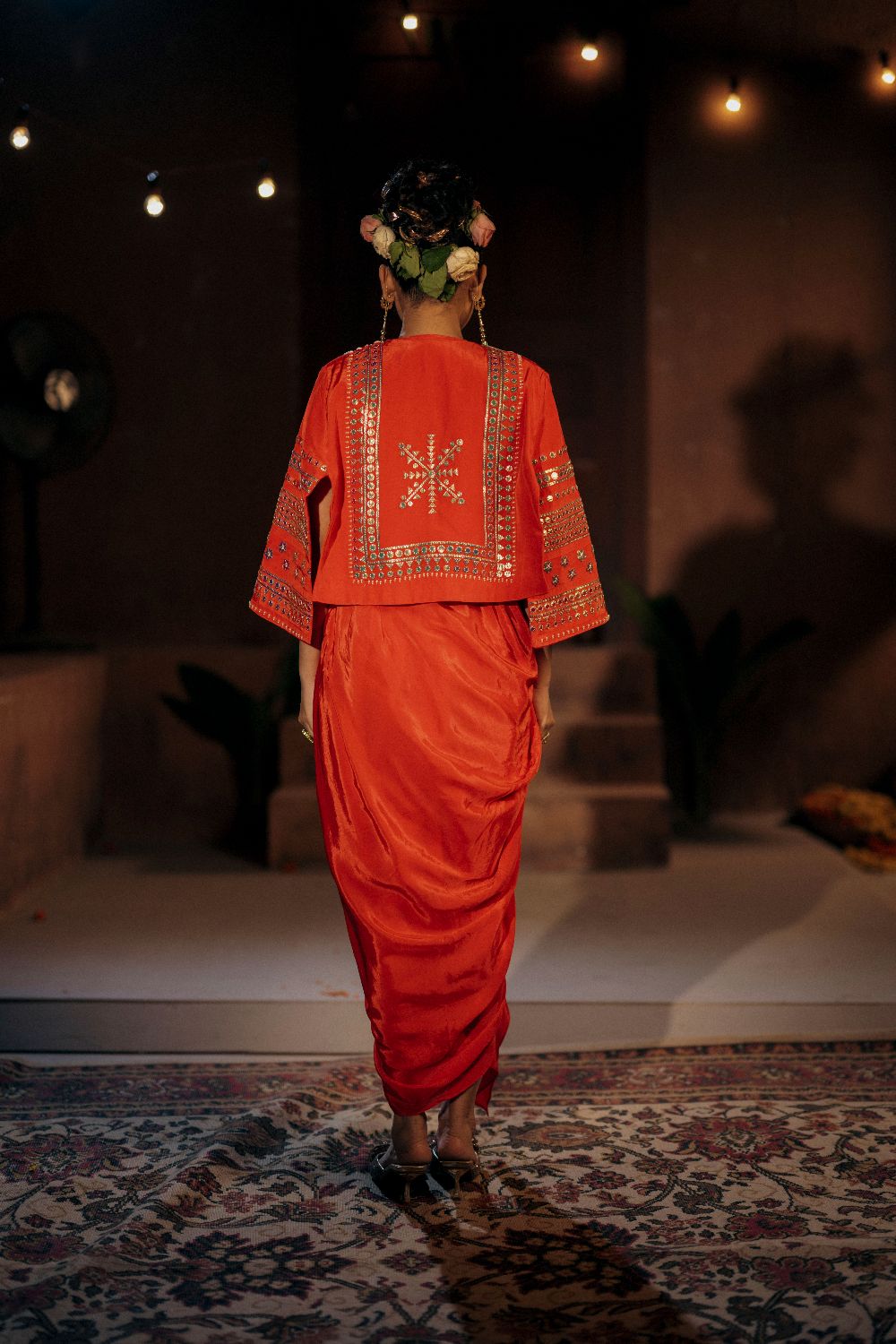 Make a statement with this Crop Jacket Cape Set, designed to combine contemporary style with festive elegance.Model wears size S.