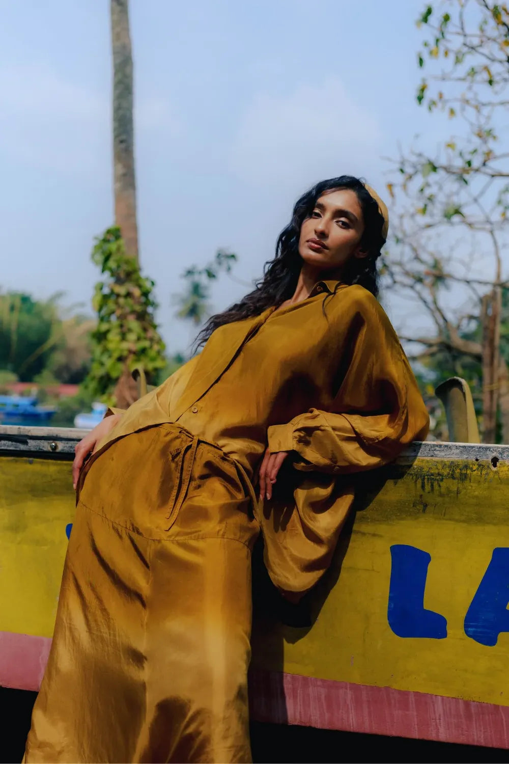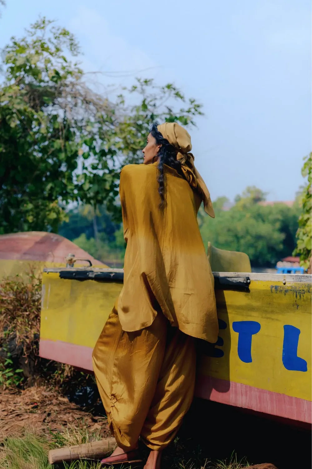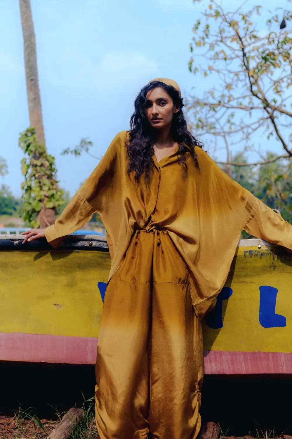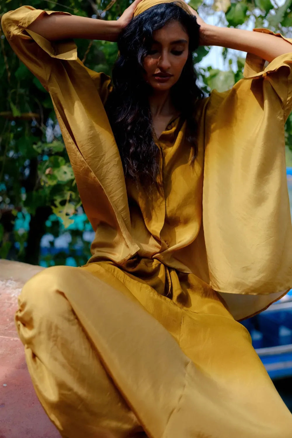 A one-size, easy-flowing ensemble crafted in lightweight silk for effortless comfort. The relaxed silhouette drapes naturally and moves with ease, offering a refined yet laid-back look that transitions smoothly from lounging to stepping out.