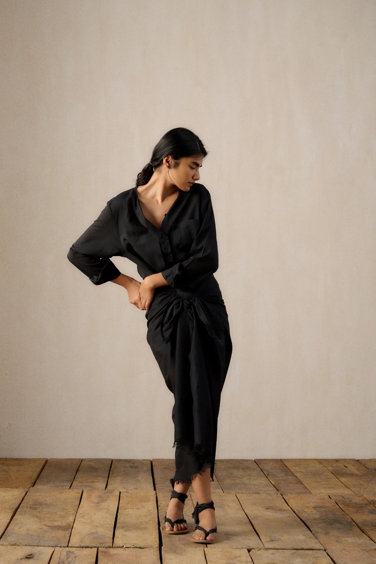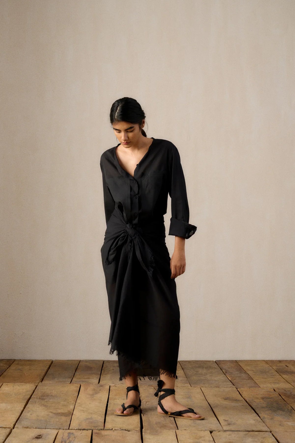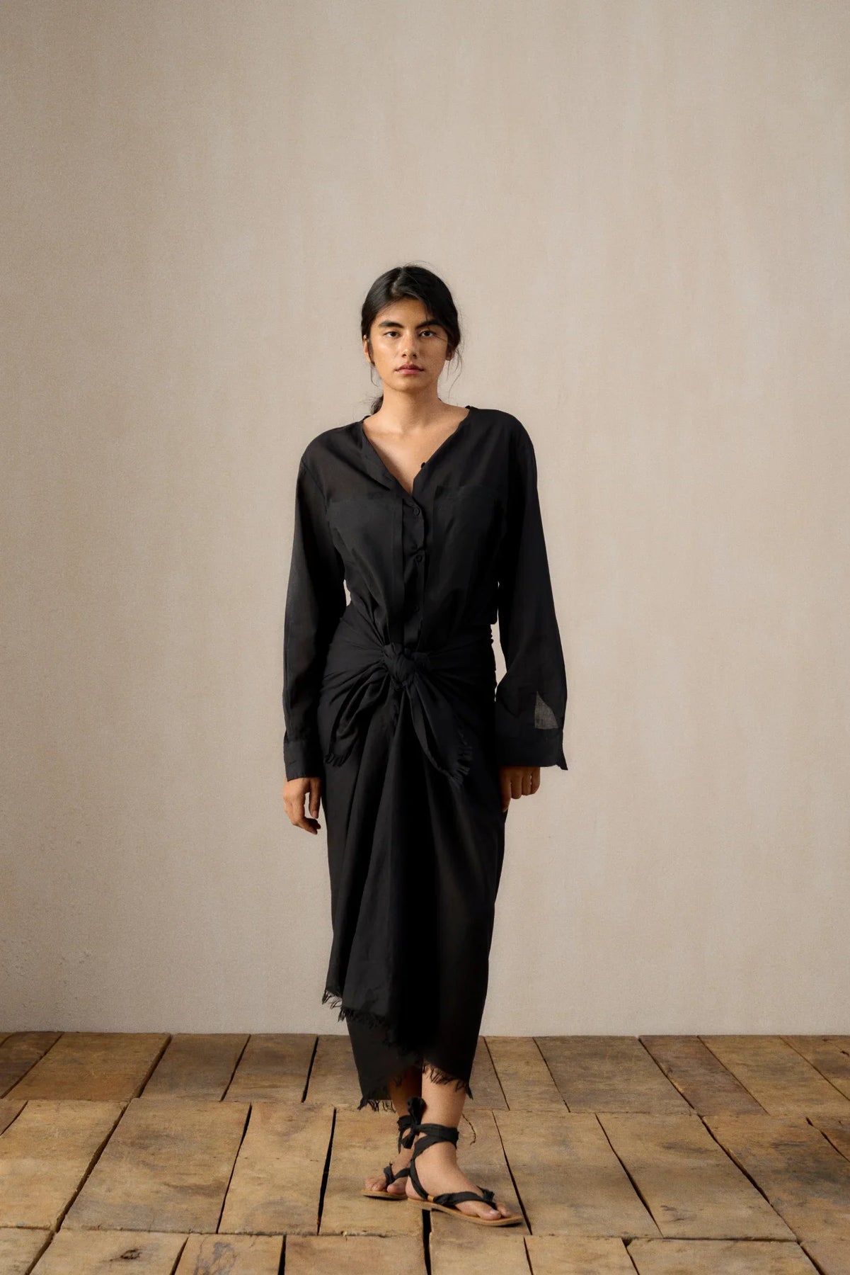 Crafted in airy cotton, our signature sarong-style shirt dress is a ‘re-wearable’ statement - elevated by artisanal finishes, thoughtful construction, and a natural, lived-in texture. Designed for ease, it transitions effortlessly from day to night, making it an ideal go-to for holidays and beyond.