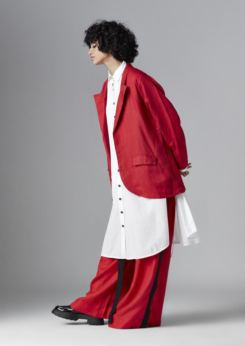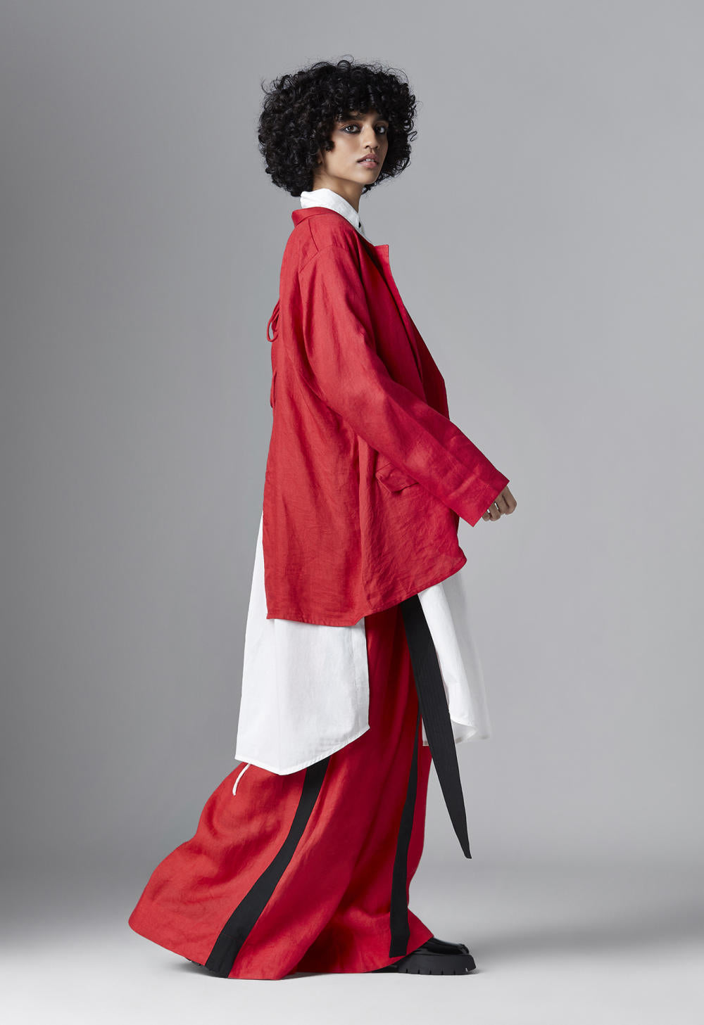 JACKET WITH LAPEL, FULL SLEEVES, CURVED HEM, DEEP U BACK FLAP AND BACK TIE UP OPENING