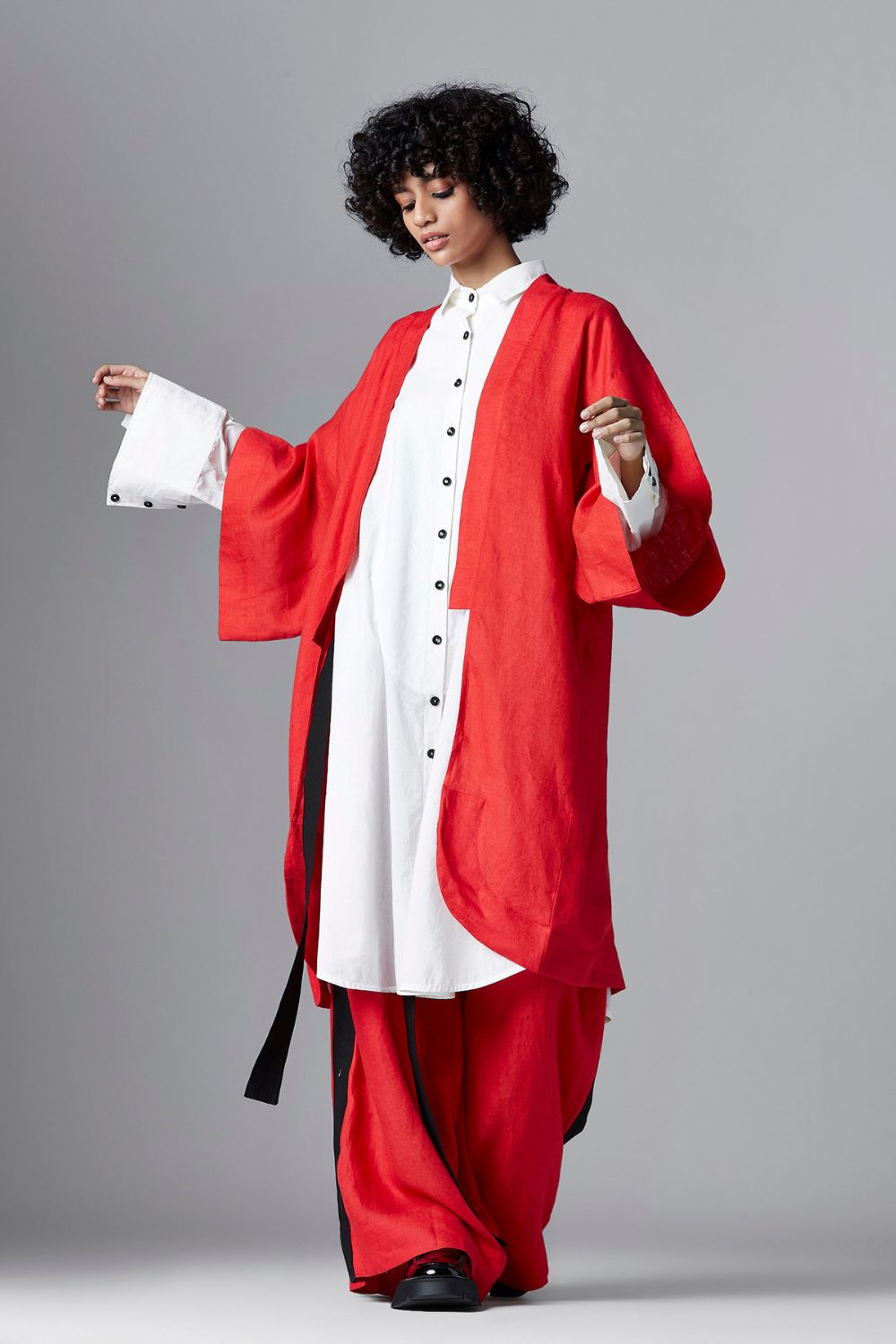 LONG KIMONO JACKET WITH COLLAR AND BACK BUTTON DOWN PLACKET