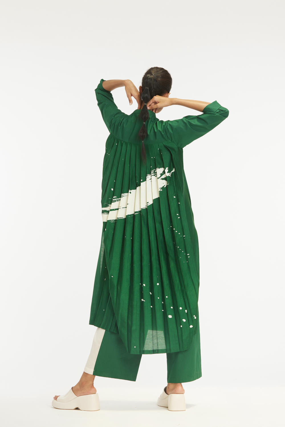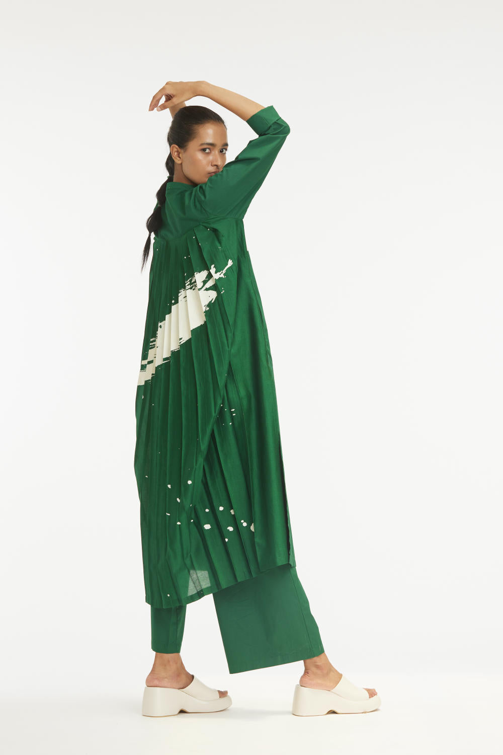 - Back pleats- printed chanderi