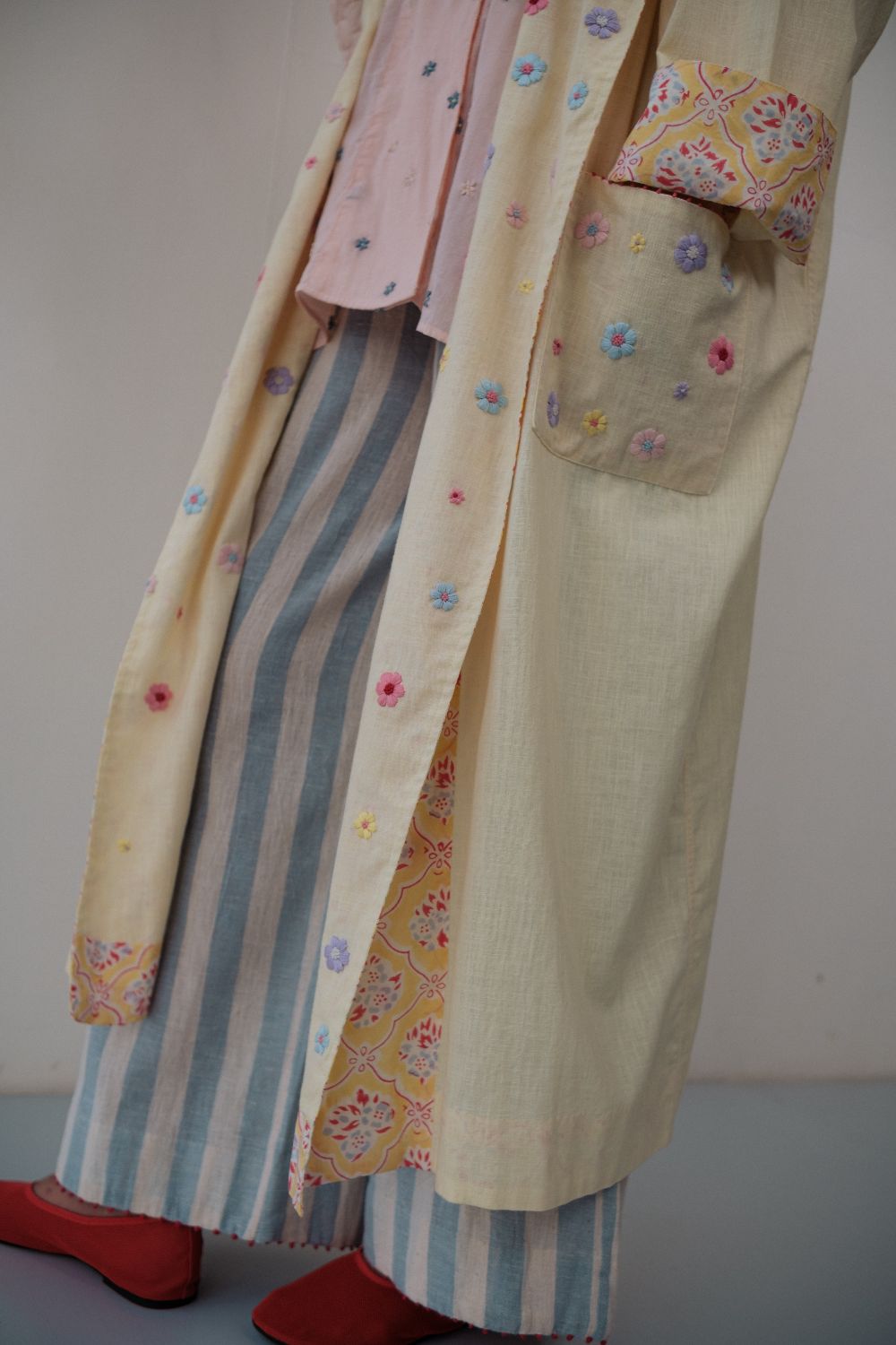 Jacket in zaika cotton hand embroidered with multicolor flowers by our in house artisans.