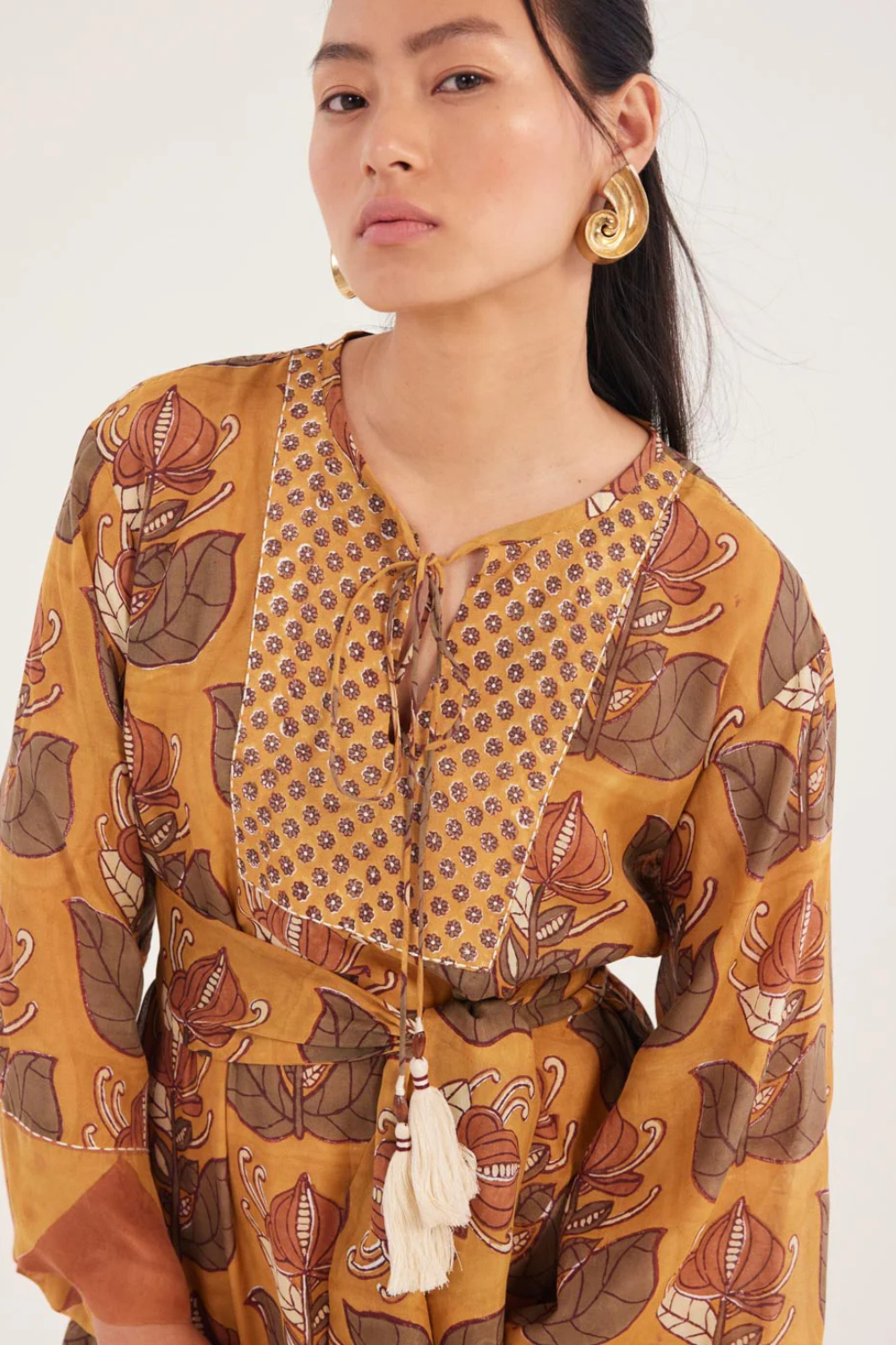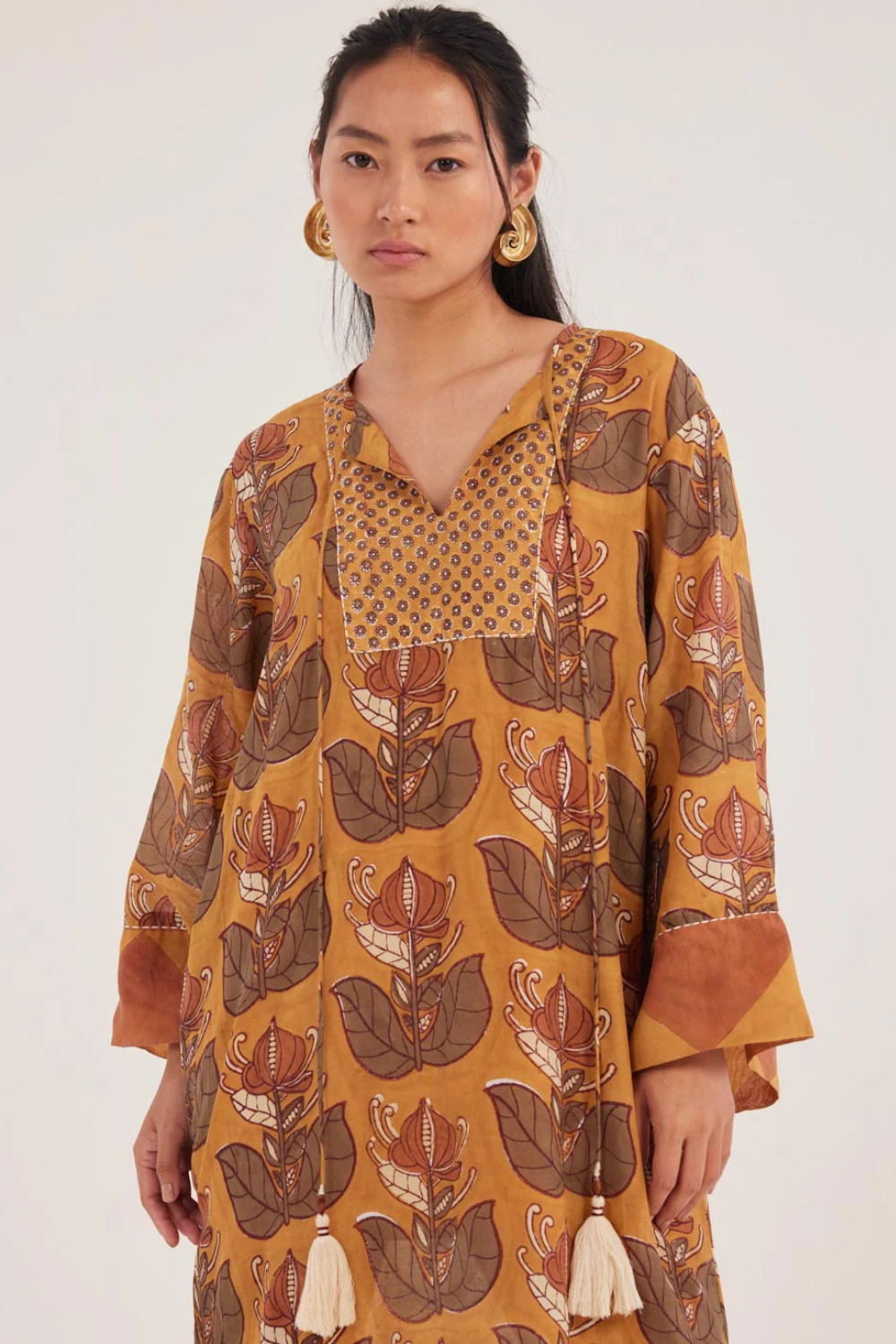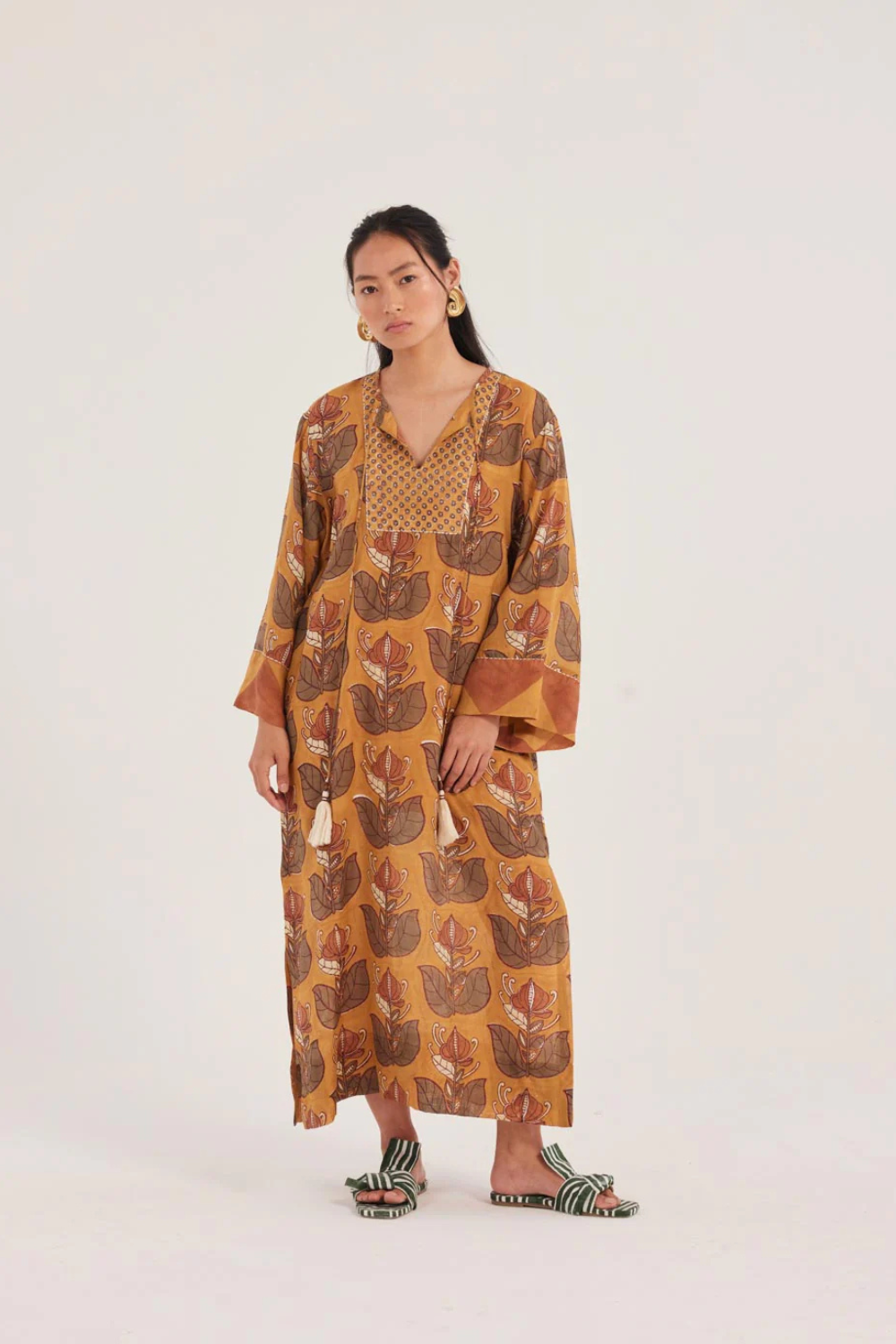 We love a good kaftan. This one’s handblock printed on muslin silk in a signature JODI print, with a relaxed fit and a belt if you feel like cinching your waist