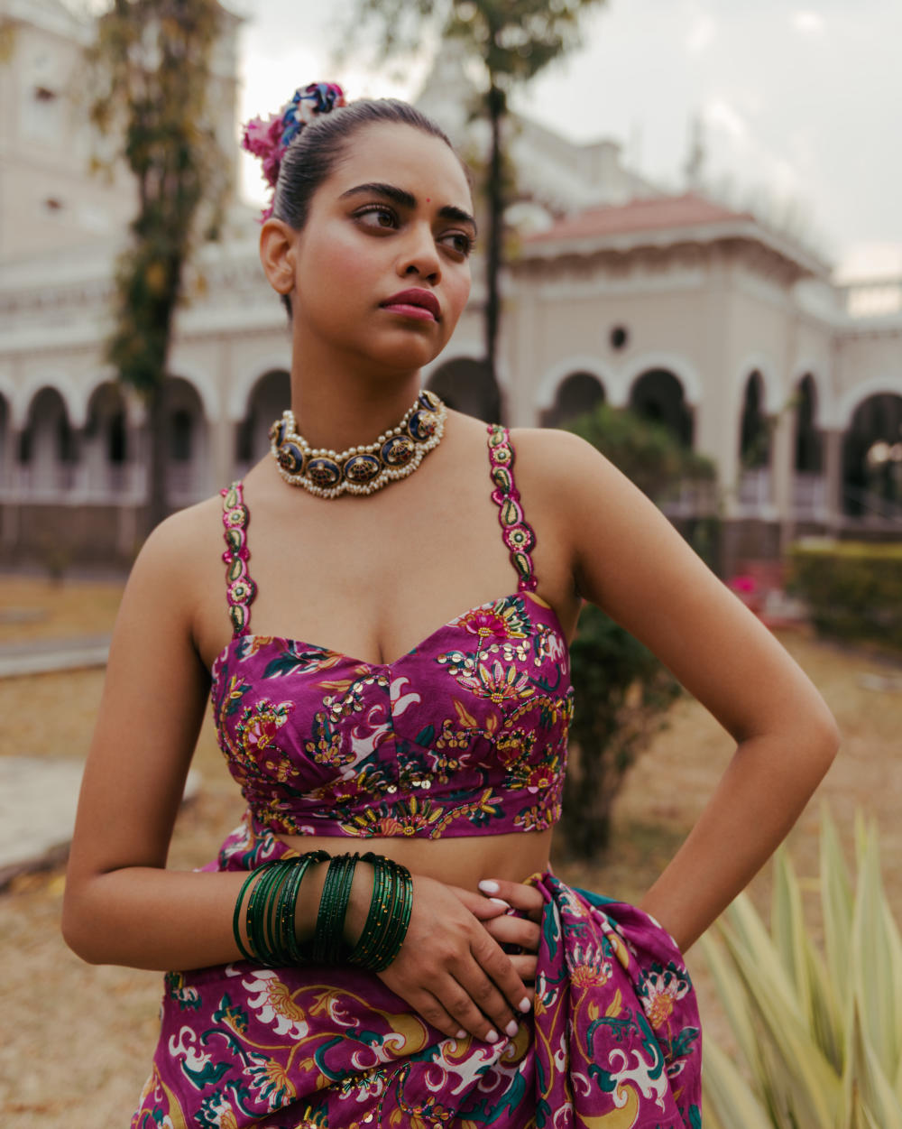 Hand block–printed textiles become canvases of unexpected geometry; colours flirt and converse rather than simply match; silhouettes carry an ease that mirrors the modern woman’s rhythm. There is a certain audacity to their aesthetic — not loud, but liberated. Not trendy, but timeless in its cultural fidelity.