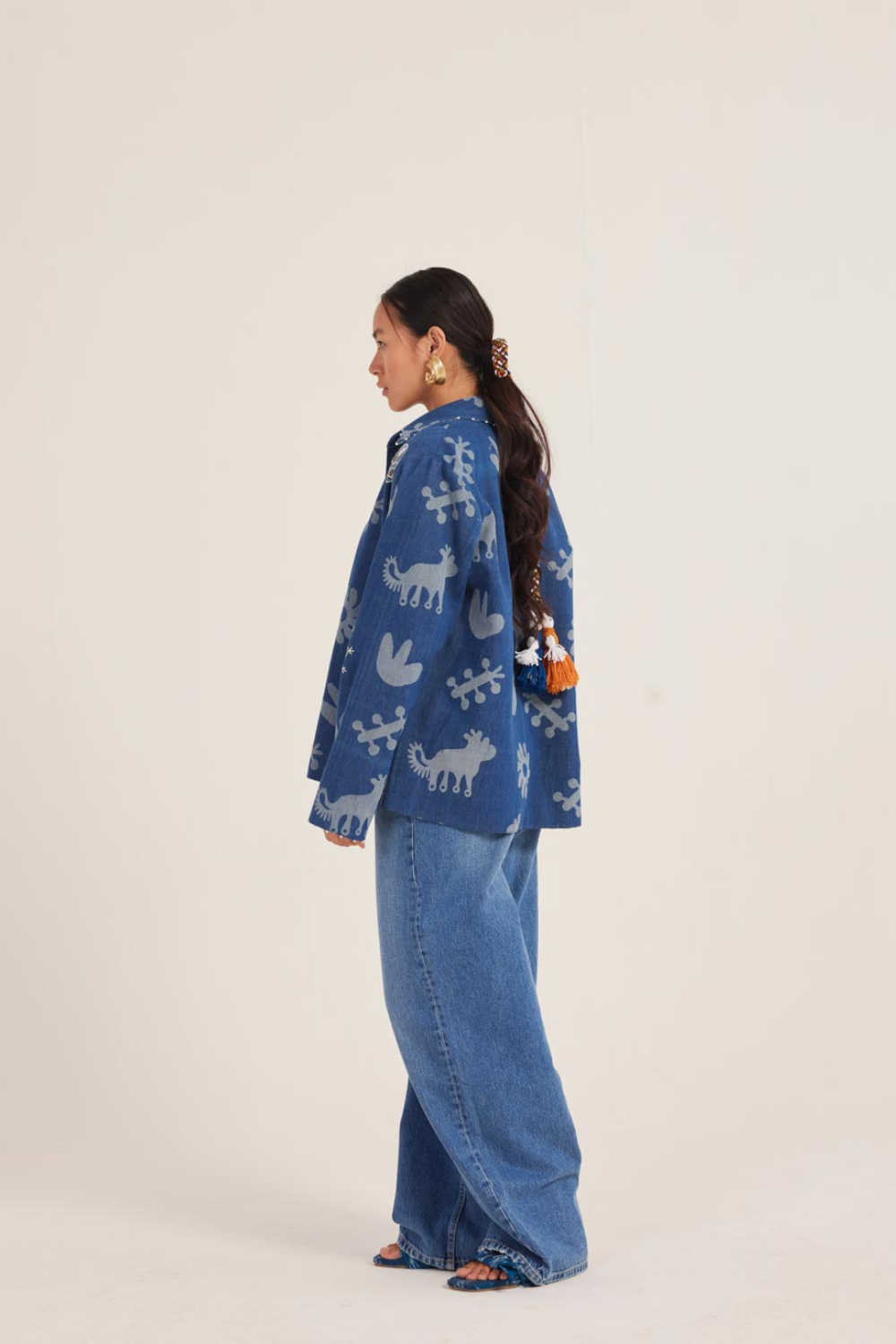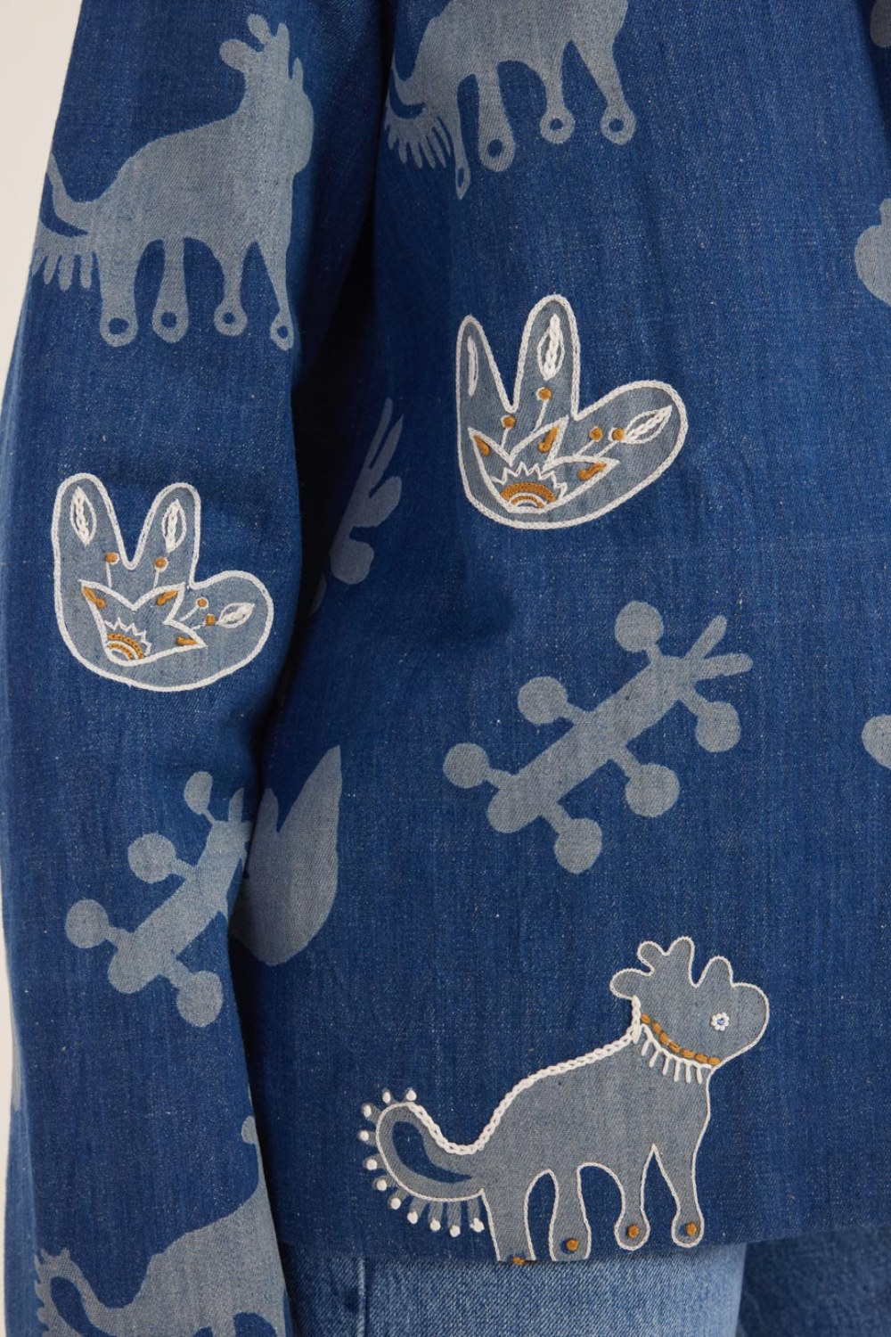 We can't resist a good reversible jacket! We’re back with another, this one’s laser printed denim on one side with hand embroidery highlighting the motif. Flip it and you get handblock printed in muslin silk on the other side. Basically, it’s two outfits in one!