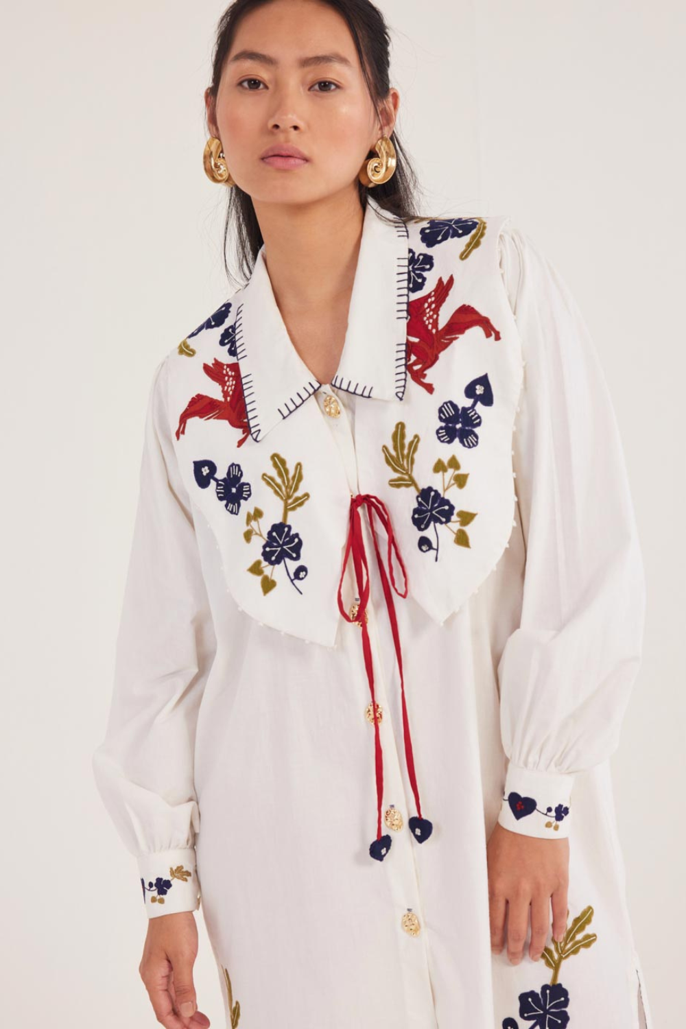This collar bib is crafted in soft cotton with playful appliqué detailing. You can pair it with our Kiji shirt dress to complete the look.