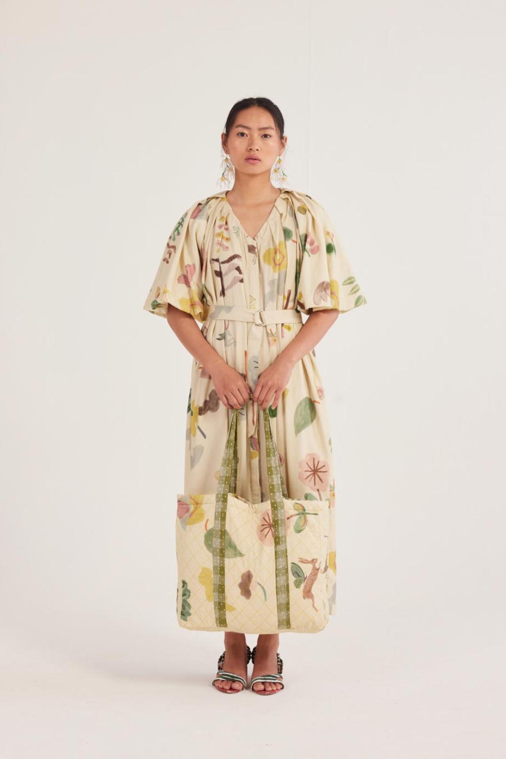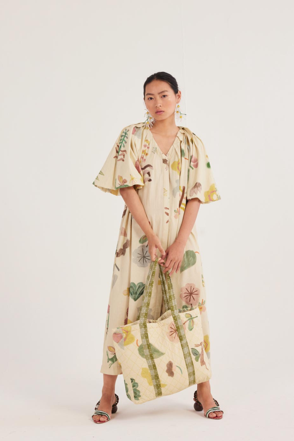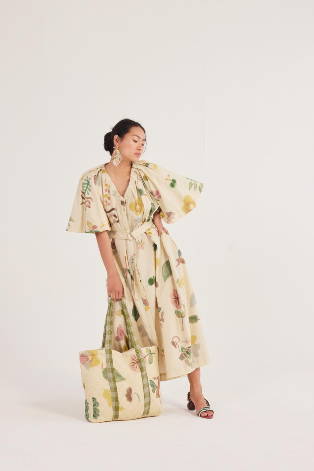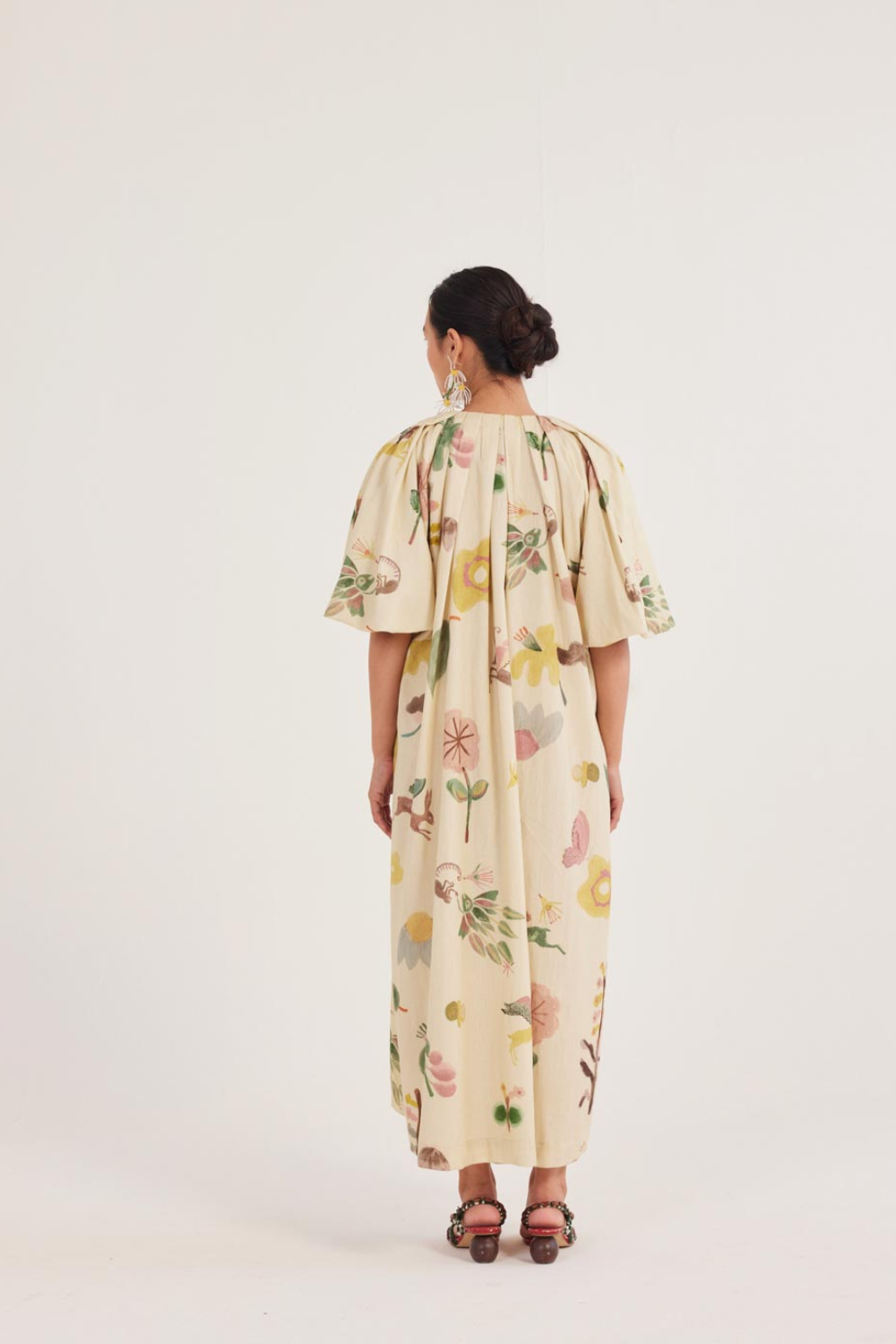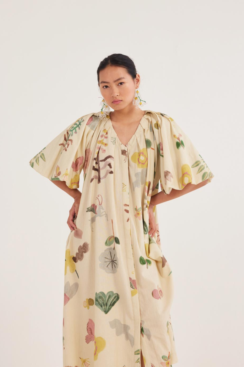 A dress that moves with you. Relaxed and flowy, with a flattering V-neck and soft pleats along the sleeves and shoulders—perfect for twirling, strolling, or just feeling fabulous.
