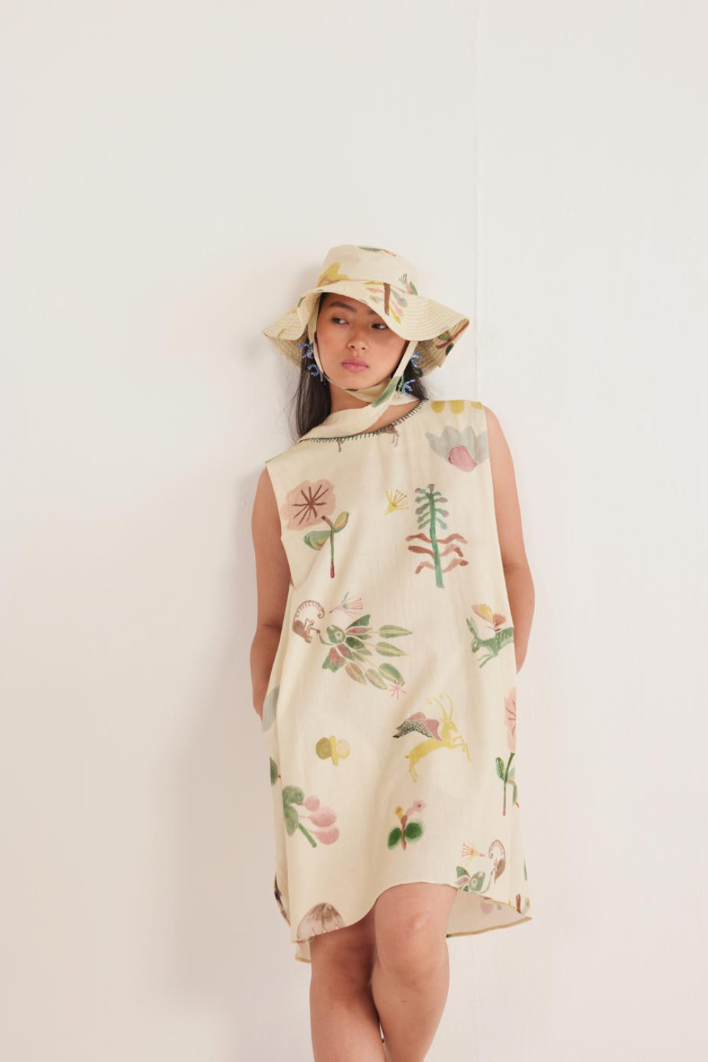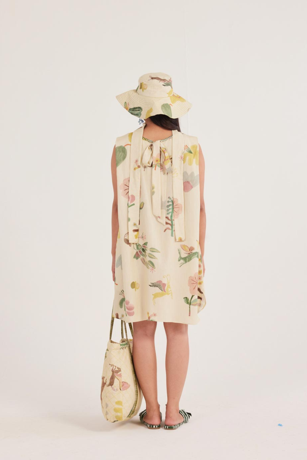 Easy, airy, & made for sunny days. This signature JODI print developed by hand, has a relaxed, boxy fit with a breezy back tie-up.