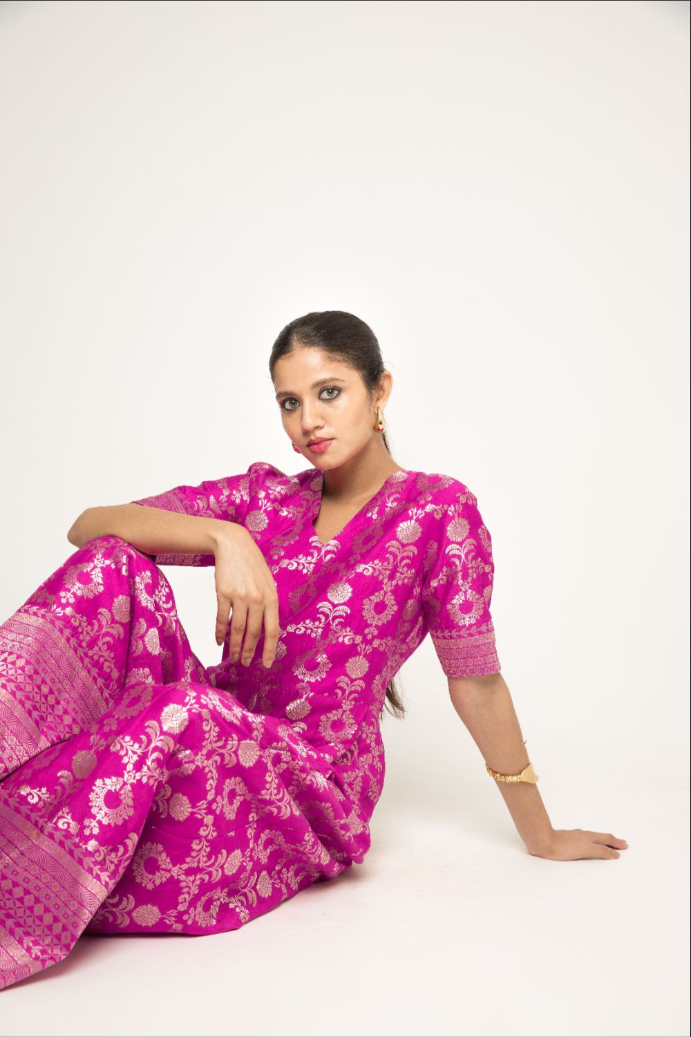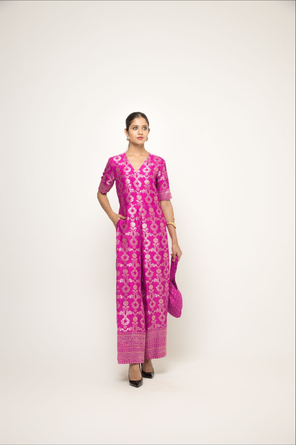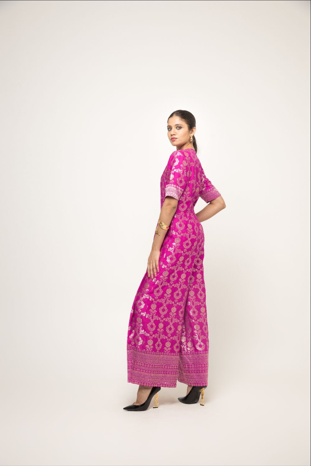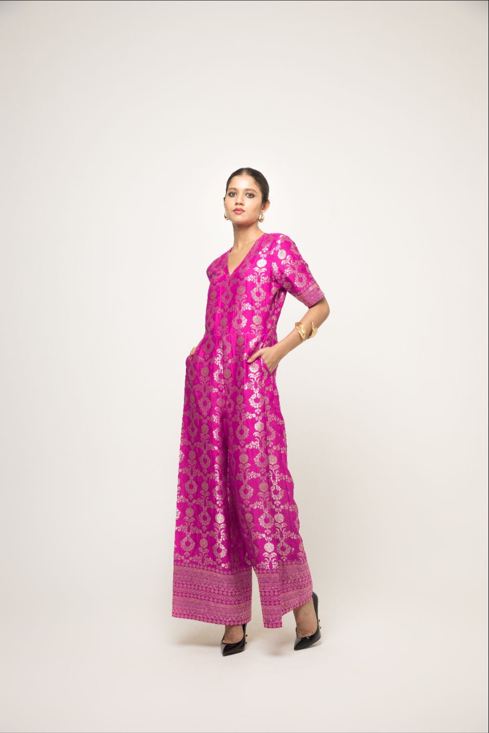 Pink statement Handwoven Brocade Jaal Jumpsuit with Border detail