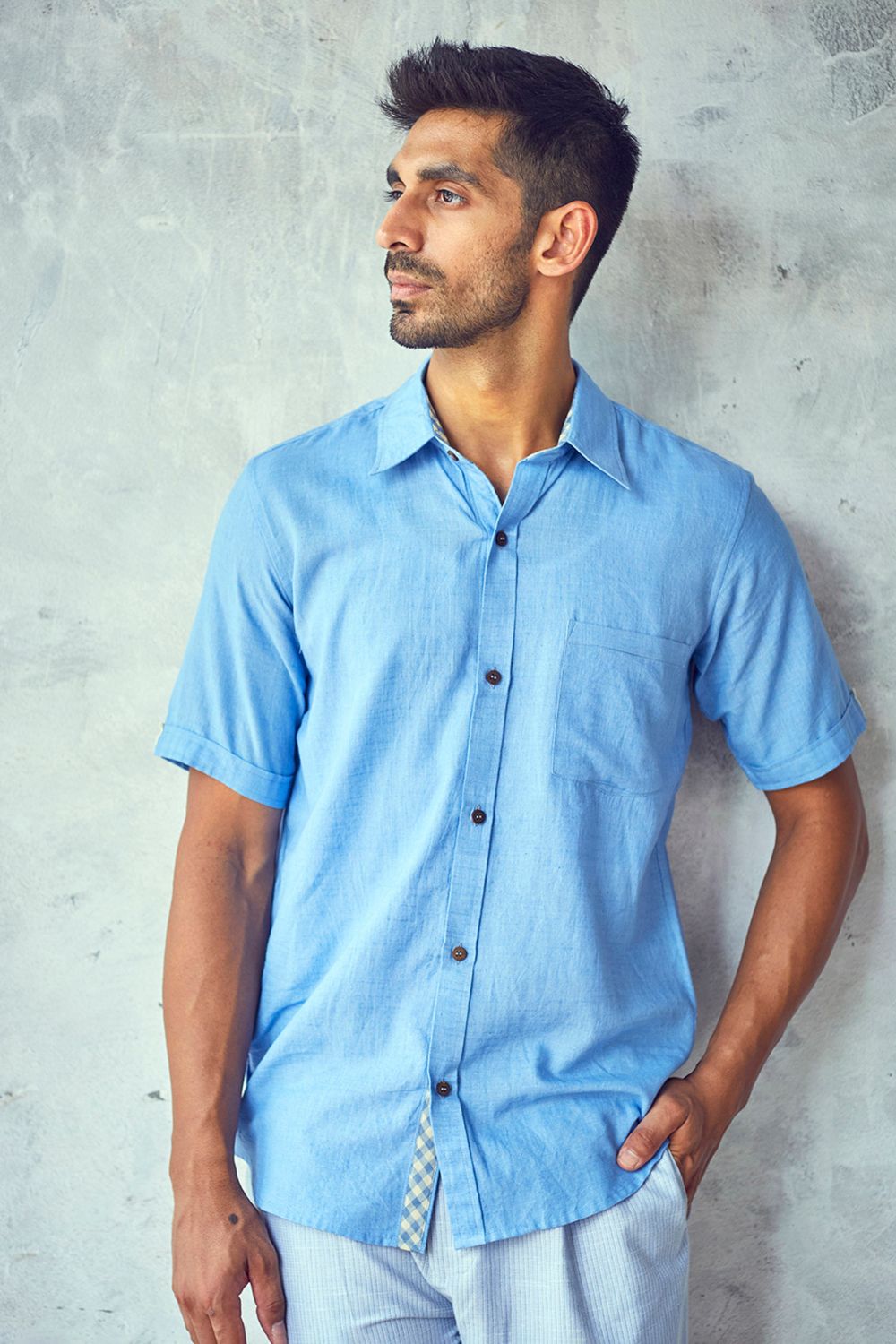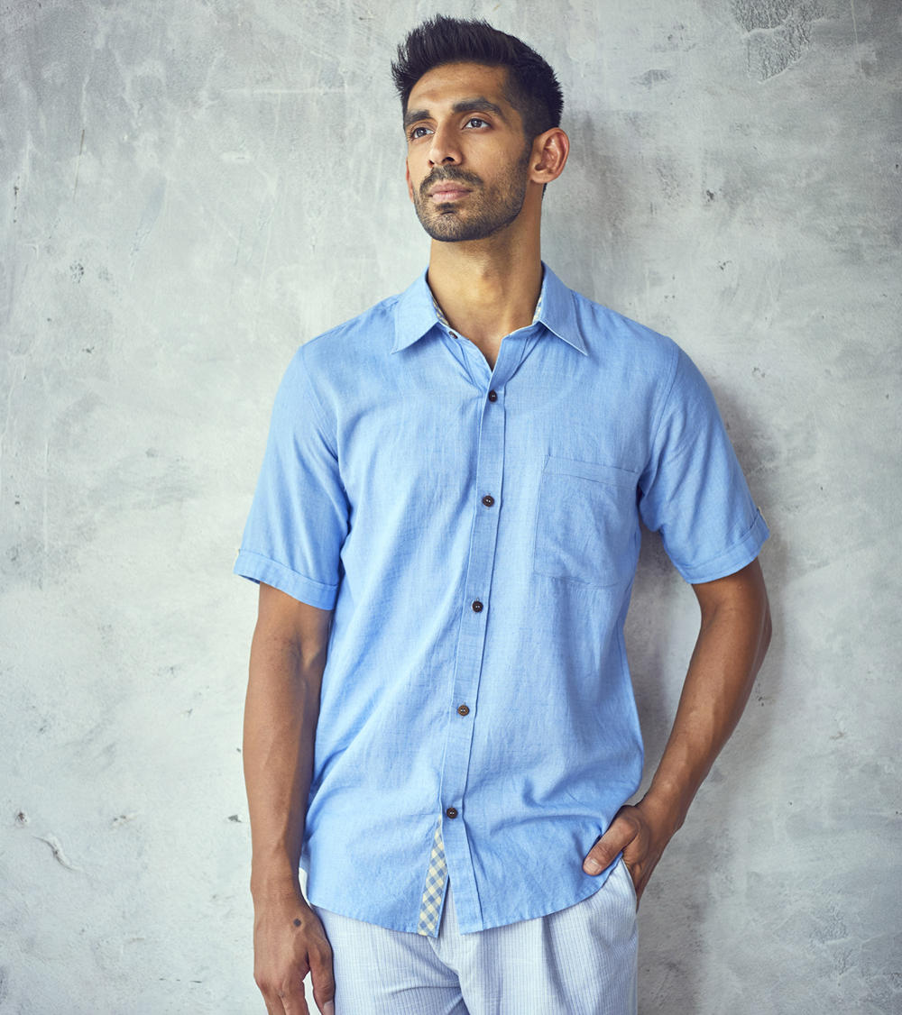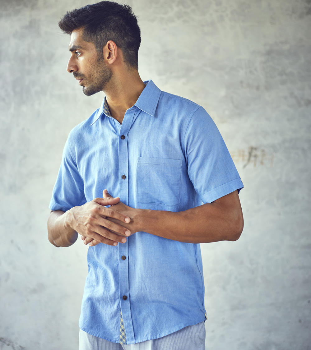 A classic half sleeve regular fit shirt with spread collar and a patch pocket up front. The soft and breathable fabric construction allows day-long comfort.