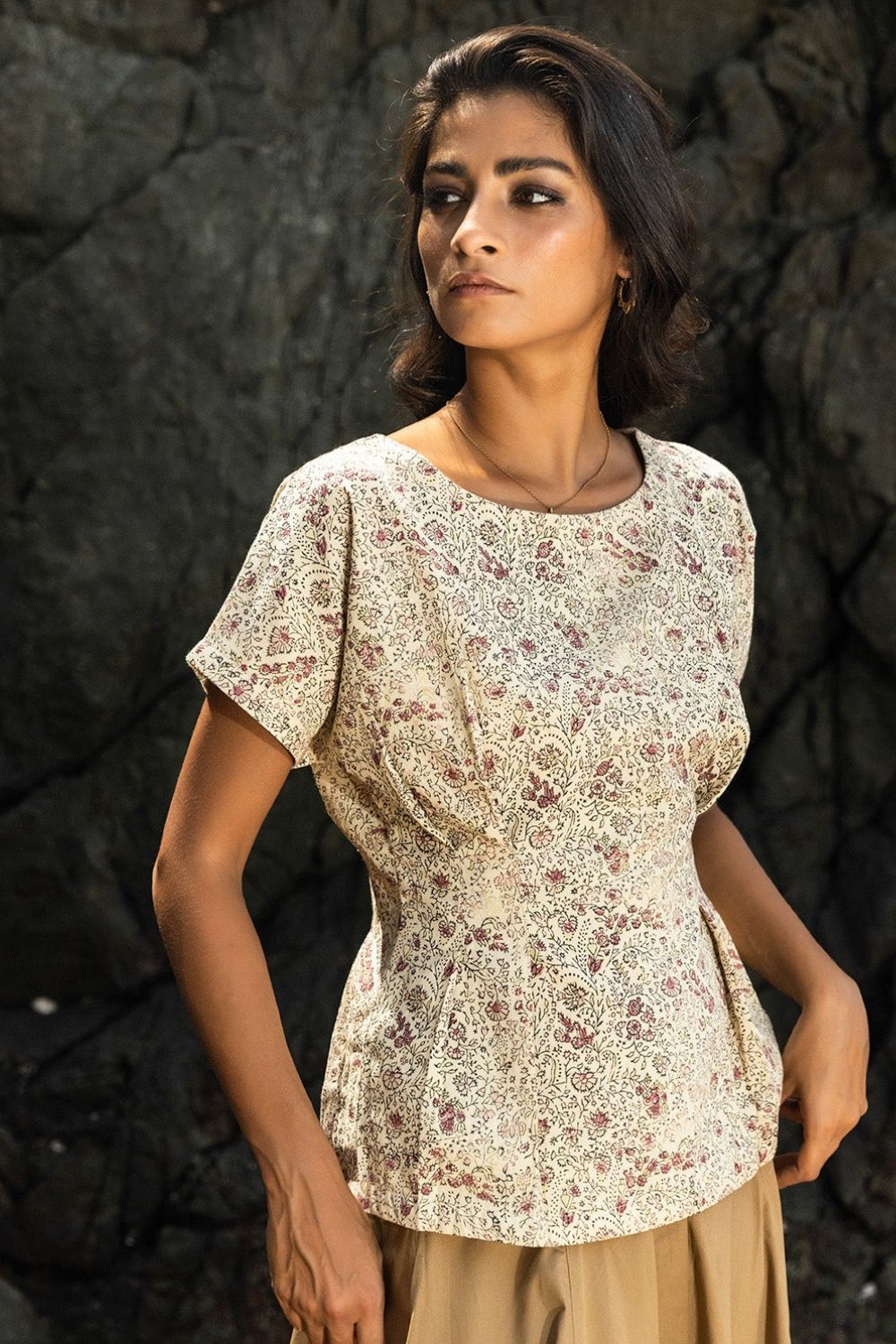 A printed drop shoulder top comes with a dart fitting on waist to give you a perfect start of a day to day life.