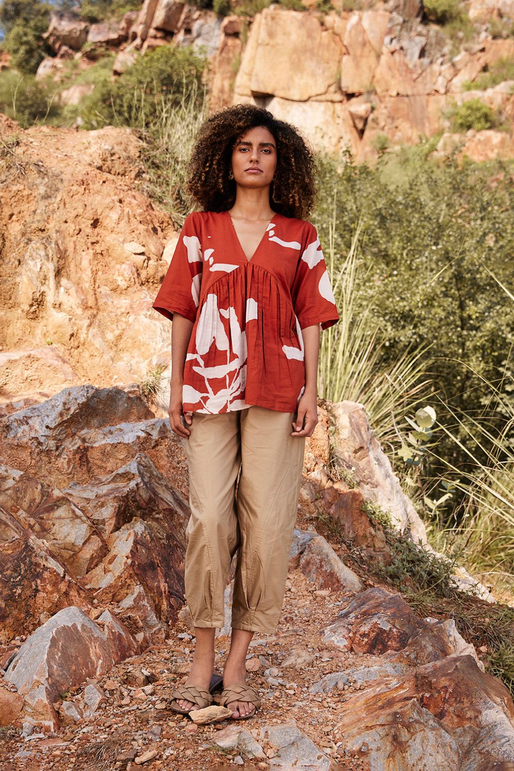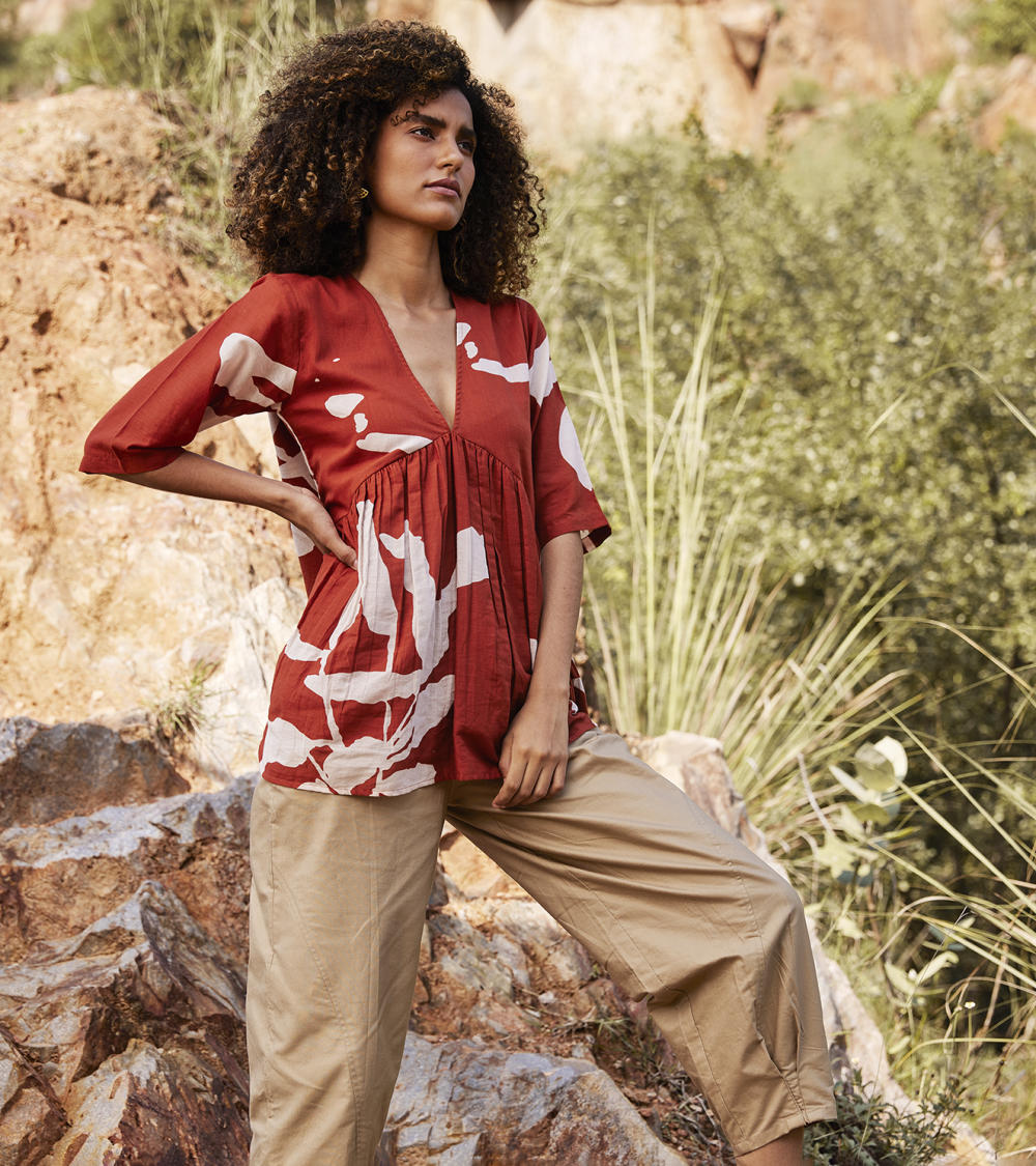 Each piece is grounded in India’s textile heritage yet designed for a woman who moves easily between cultures and climates. The brand’s commitment to homegrown cotton, artisanal processes, and clean, breathable shapes has made these garments not just beautiful, but deeply wearable.