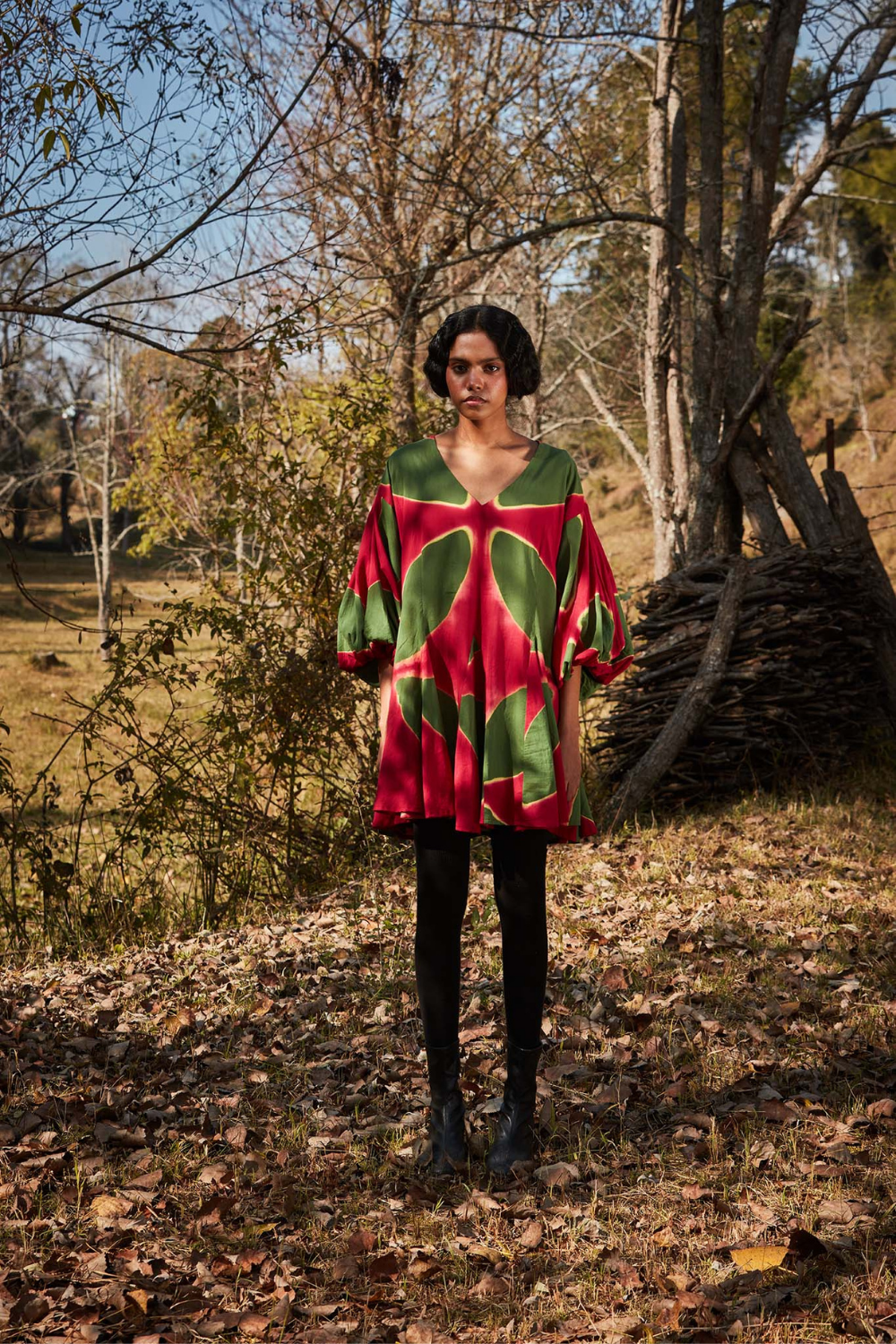 Rooted in handloom cotton and natural dyes, Khara Kapas works with the simplest geometry — circles, squares, triangles — and turns them into silhouettes that feel effortless, global, and emotionally familiar. There is a stillness to their clothes, a sense of returning to slower rhythms and honest materials, without ever losing relevance.