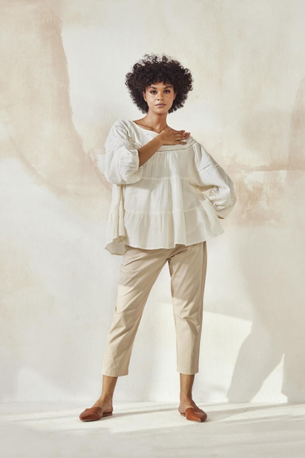 Each piece is grounded in India’s textile heritage yet designed for a woman who moves easily between cultures and climates. The brand’s commitment to homegrown cotton, artisanal processes, and clean, breathable shapes has made these garments not just beautiful, but deeply wearable.