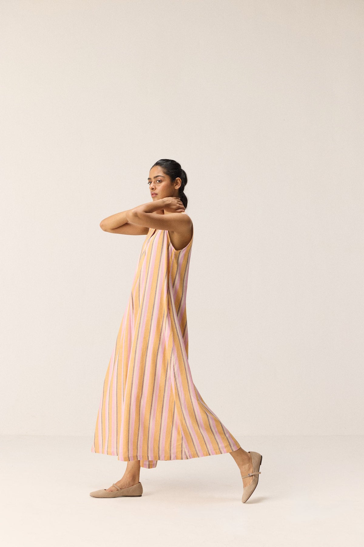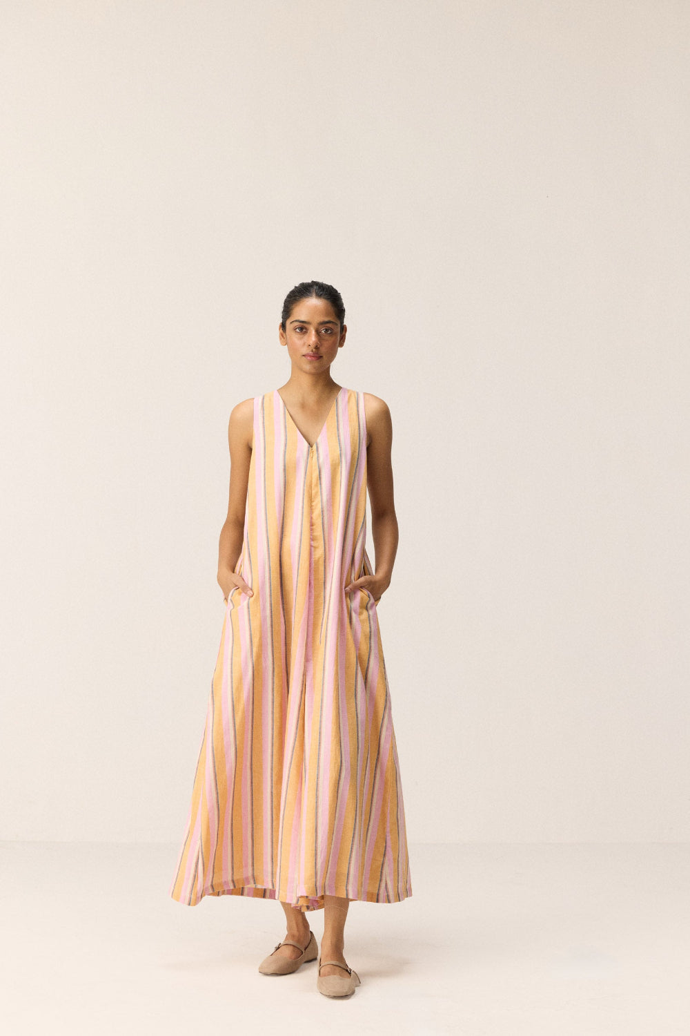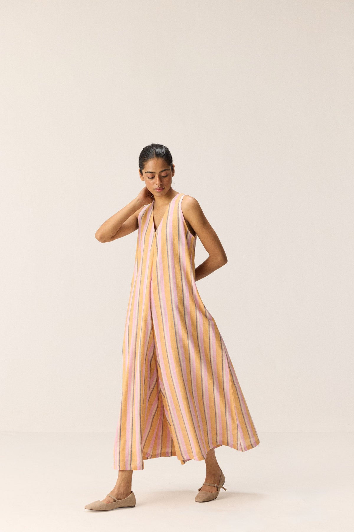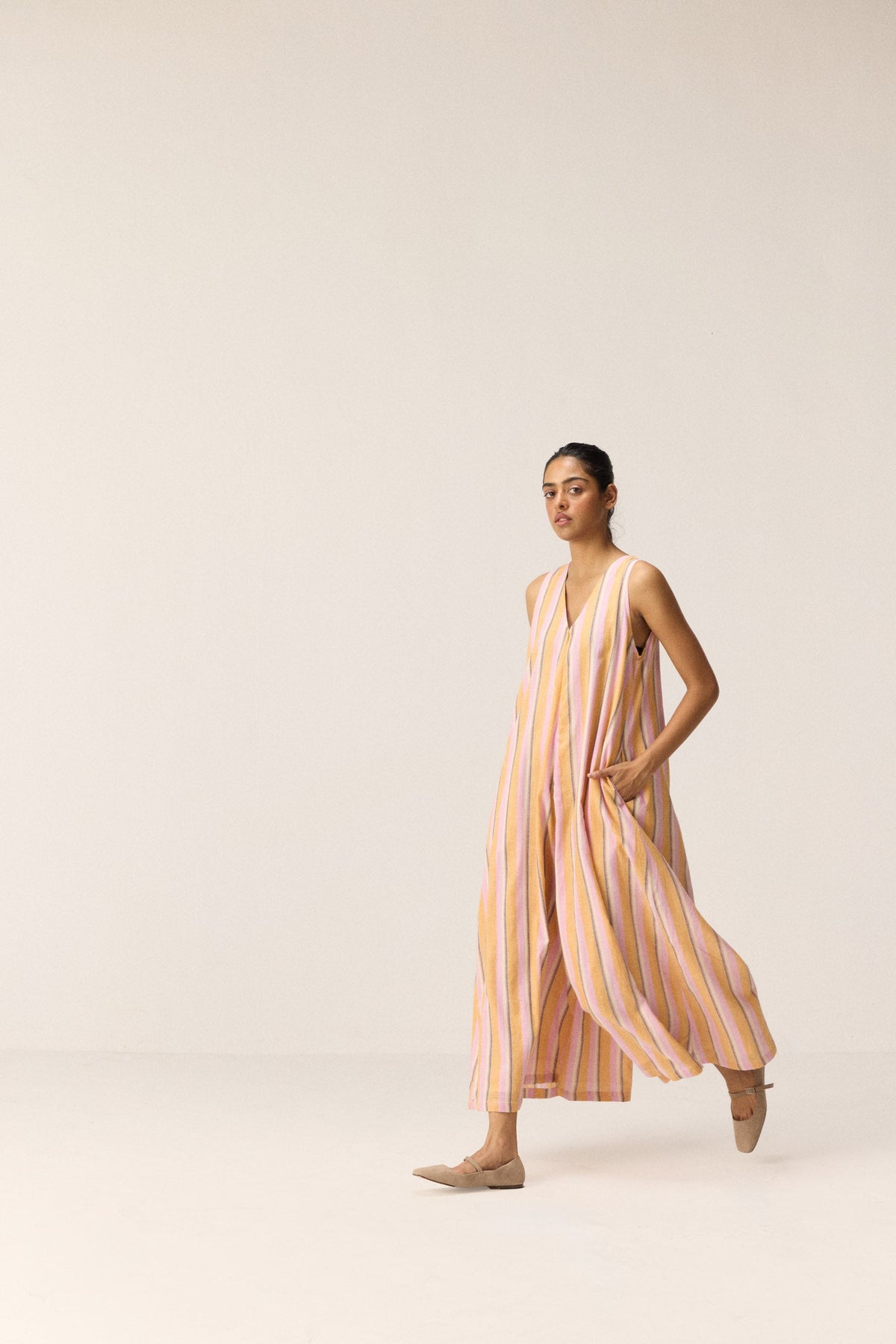 Each piece is grounded in India’s textile heritage yet designed for a woman who moves easily between cultures and climates. The brand’s commitment to homegrown cotton, artisanal processes, and clean, breathable shapes has made these garments not just beautiful, but deeply wearable.