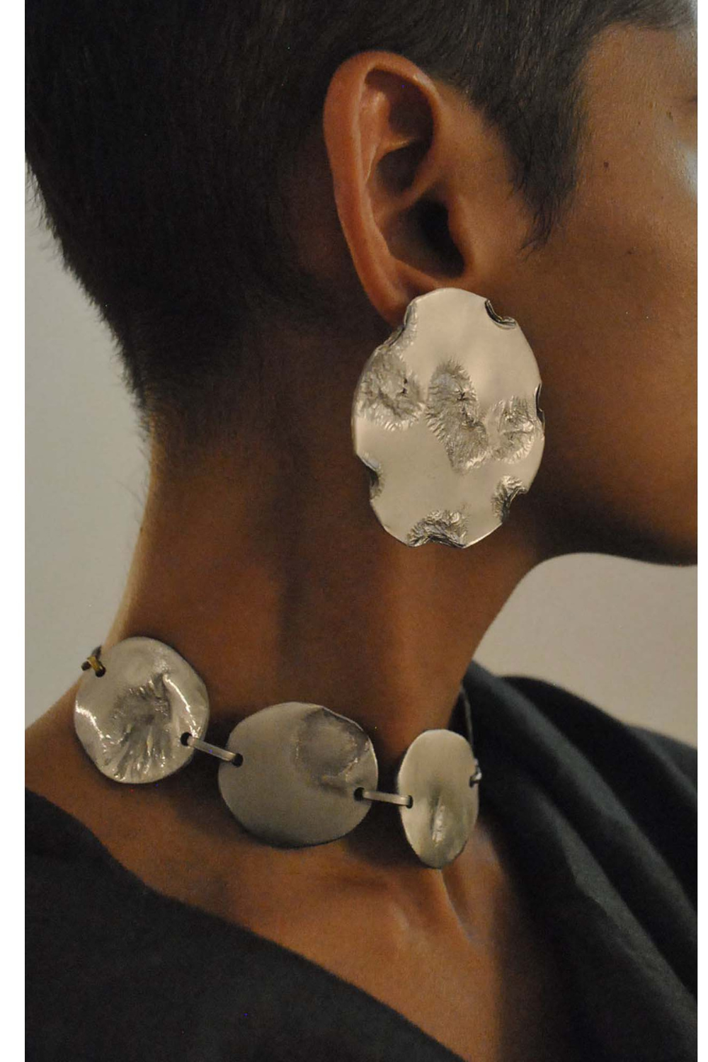 Each piece is handcrafted giving it a finish that is unique to itself, Hence, the surface texture of each piece will be subtly different from the other due to the process involved the crafting the piece.our base materials are up-cycled pieces, we receive visible irregularities and imperfections on the surface as a part of our aesthetic. we invite the wearer to receive and sense the irregularities.