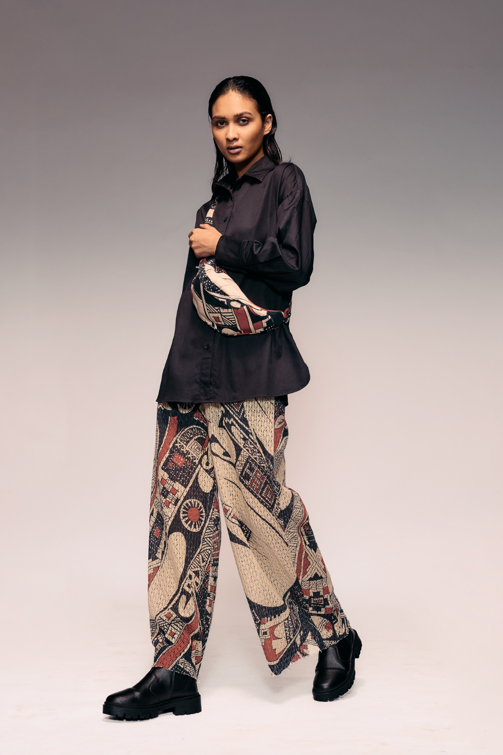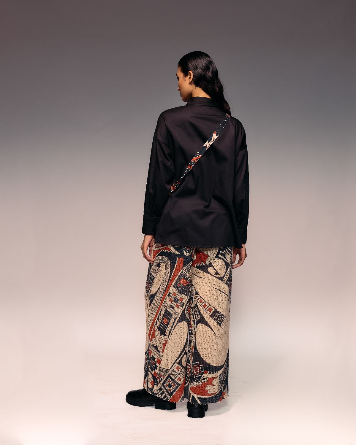 A contemporary twist on classic tailoring, the Shirt is made from premium cotton satin fabric for structure and softness. The print draws inspiration from handcrafted pottery motifs, adding a chic statement. Finely stitched seams and button detailing highlight high-end craftsmanship. Pair it with print or our signature cotton net fabric trousers, draped skirts, for versatile styling. Ideal for brunches, travel, or day-to-evening transitions across spring and autumn.