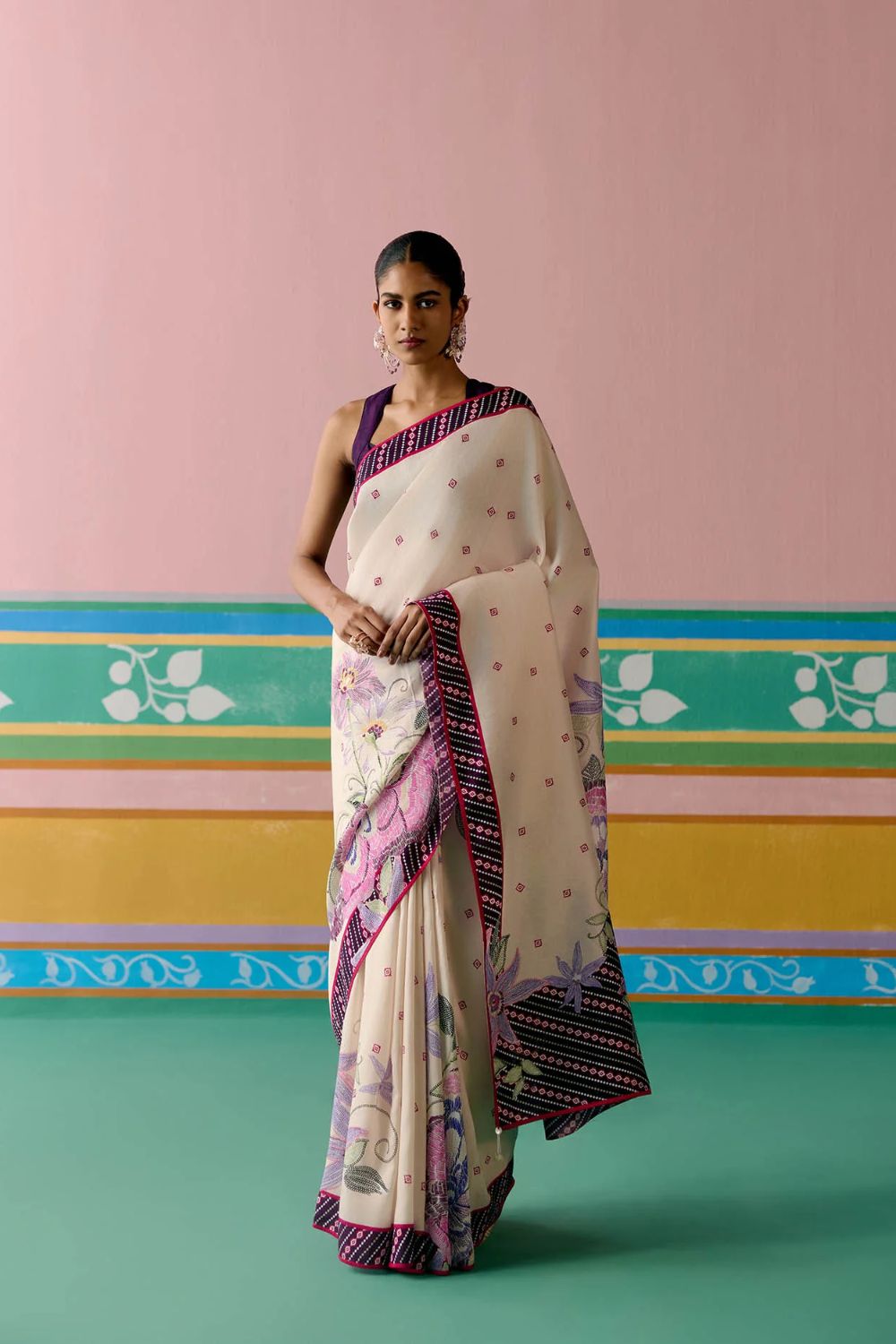 Classic yet contemporary, the Ecru and Purple Ikkat Saree is a statement in timeless elegance.