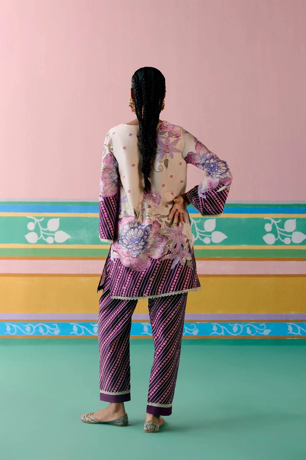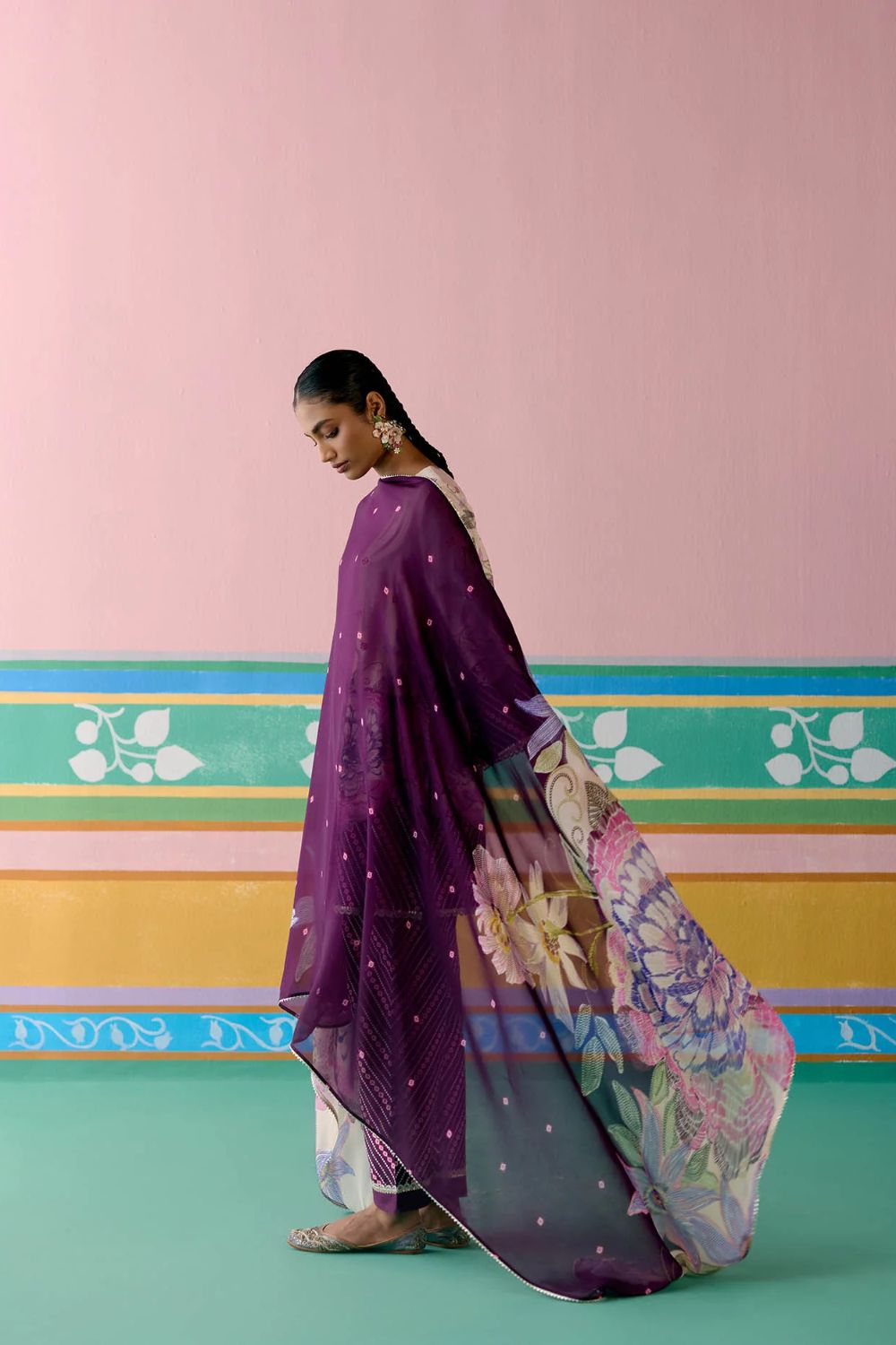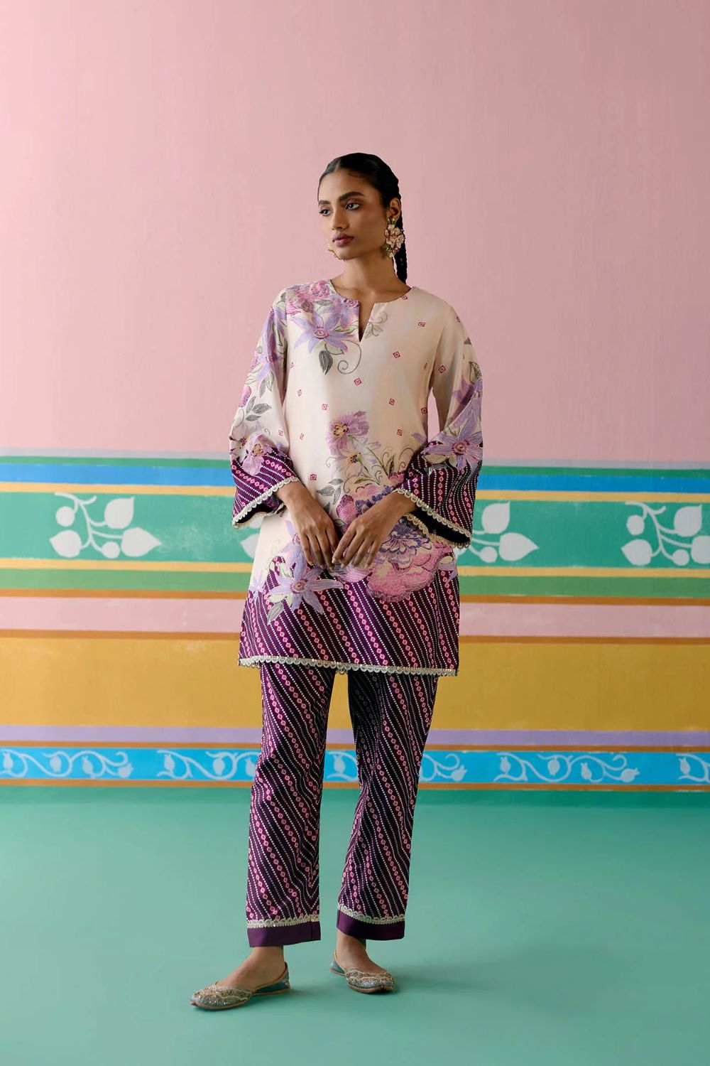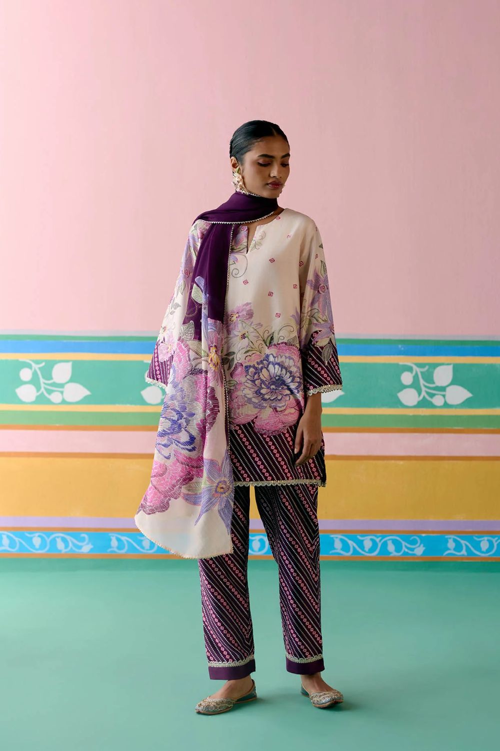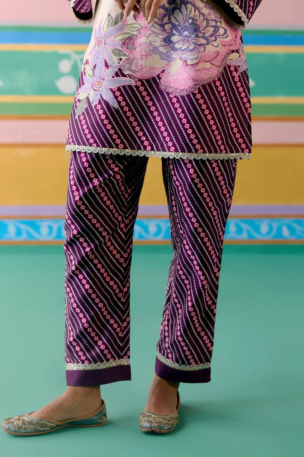 A striking harmony of tradition and elegance, the Purple Ikkat Kurta Set is a festive wardrobe classic. Crafted in fine Chanderi, the kurta features delicate hand-embroidered beading on the neckline, with lace accents gracing the sleeves and hem for a refined finish. The straight pants with an elasticated back ensure effortless comfort, while the organza dupatta edged with lace adds a touch of ethereal charm—perfect for celebrations that call for grace and grandeur.