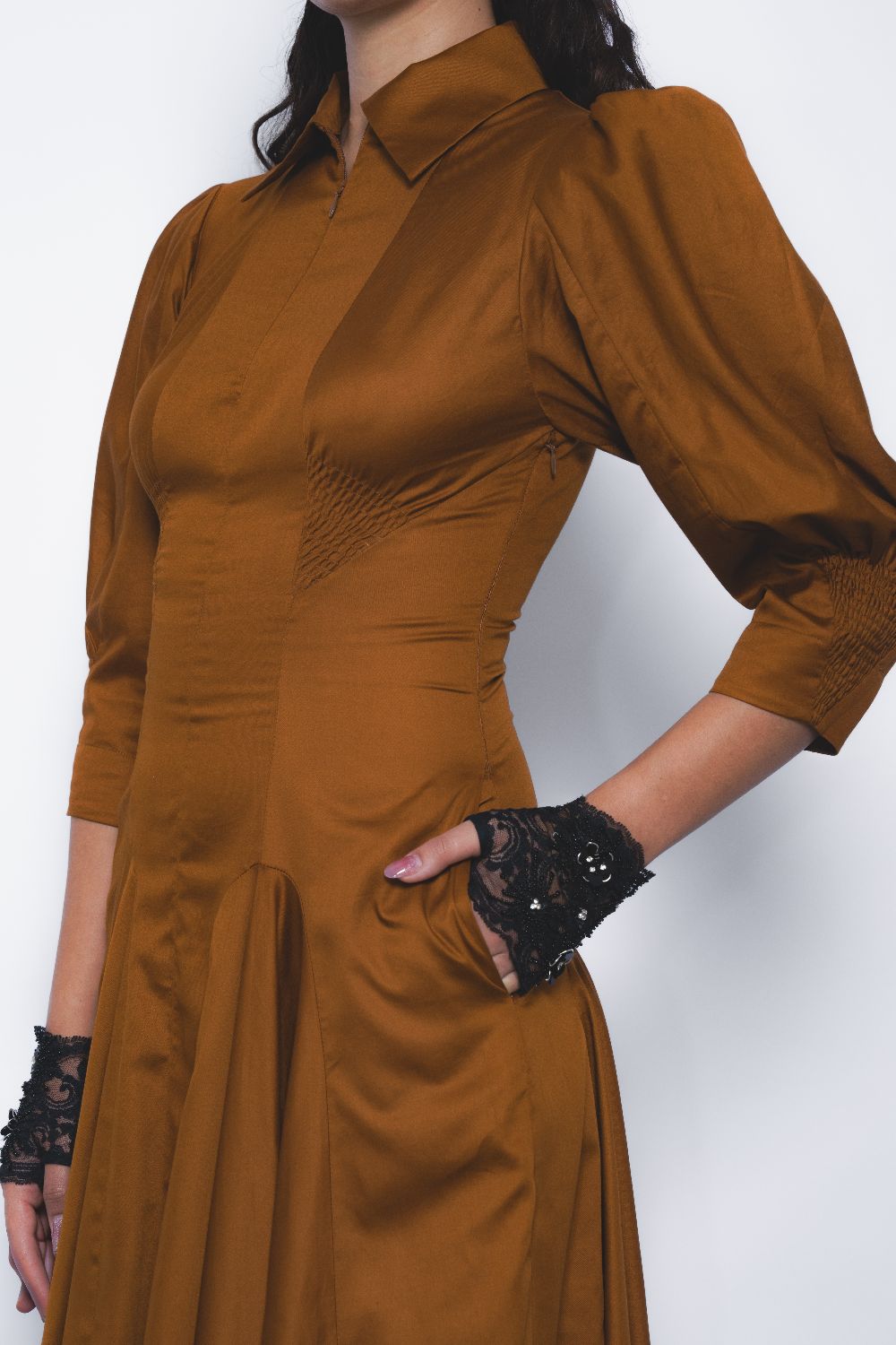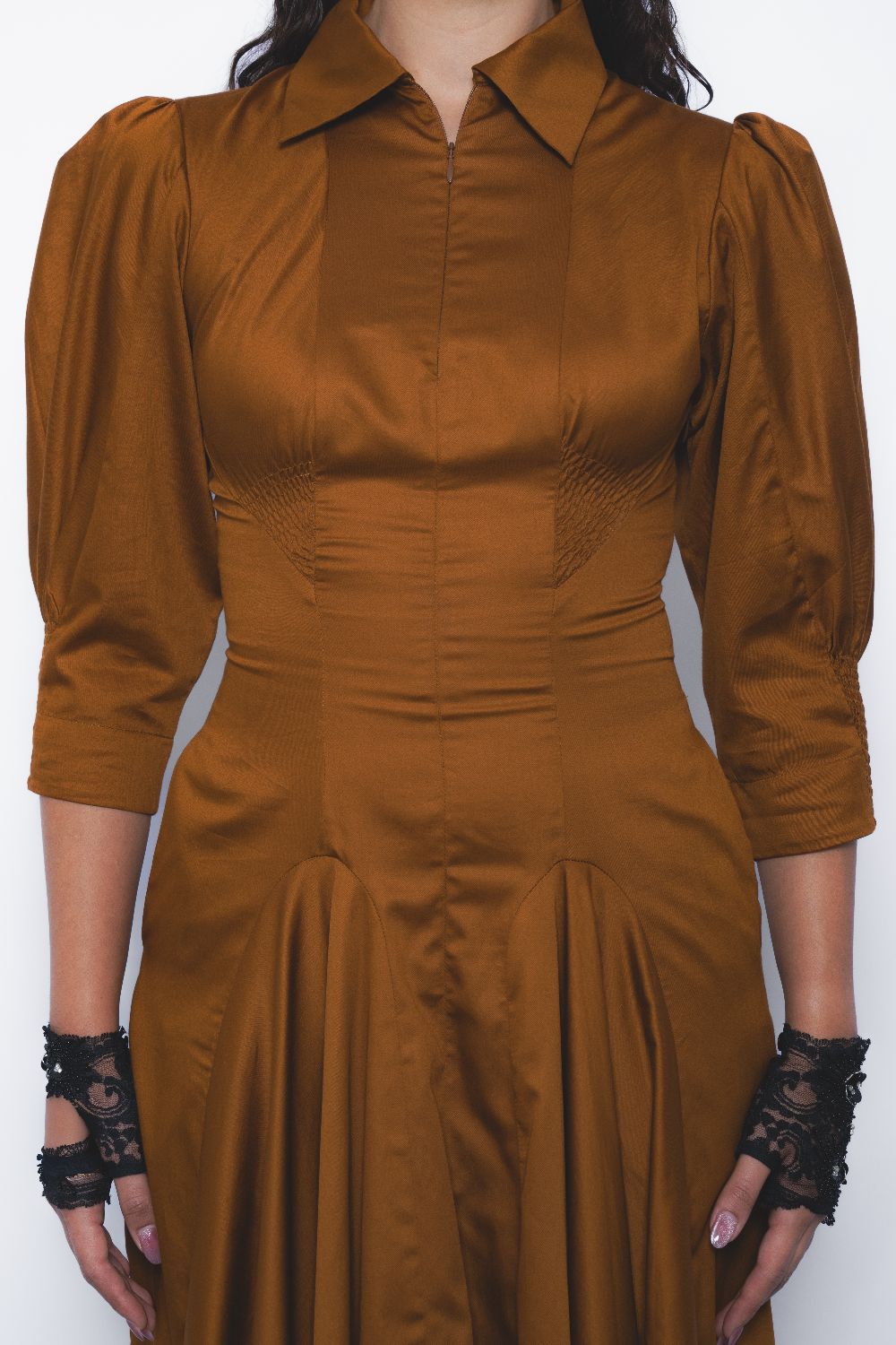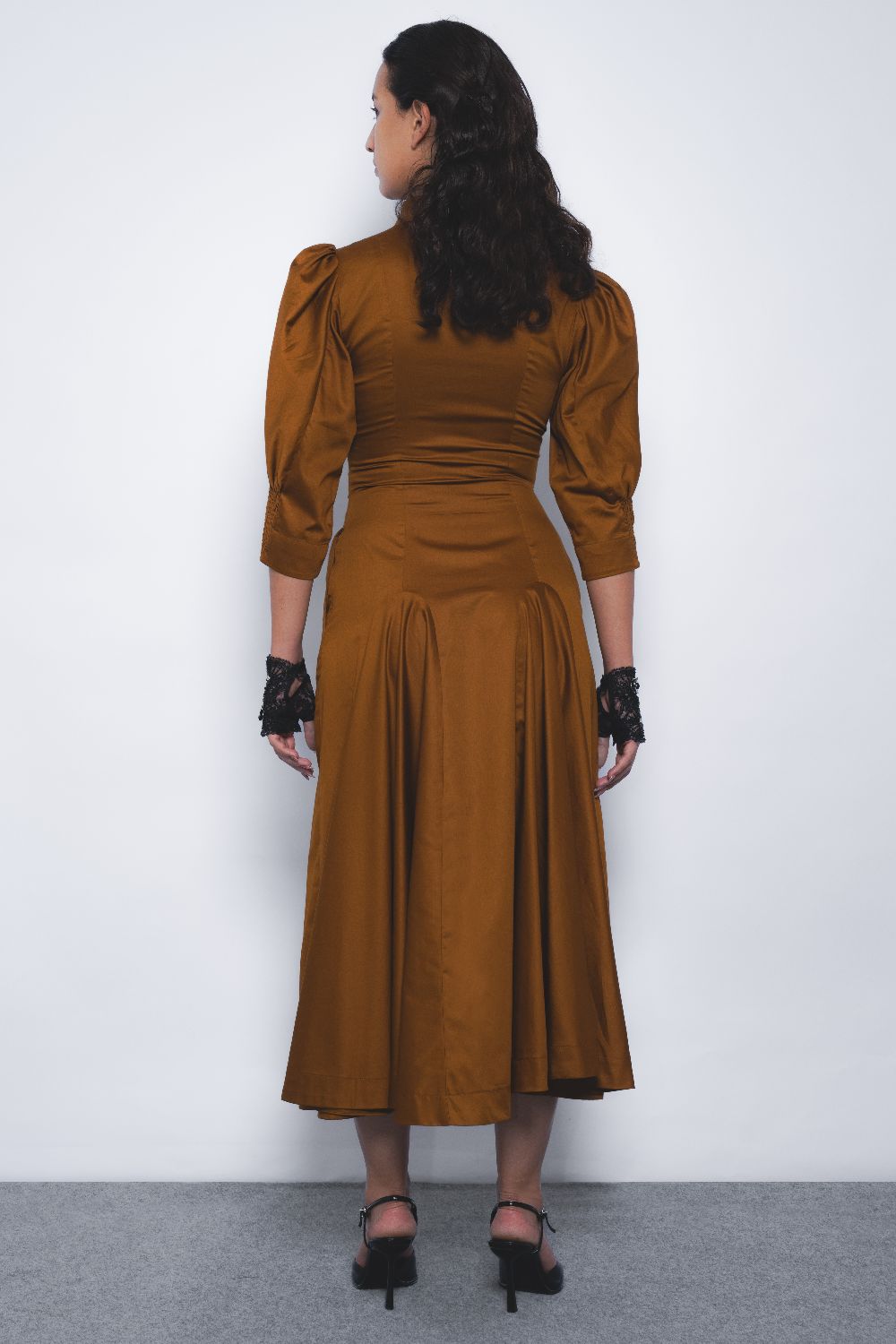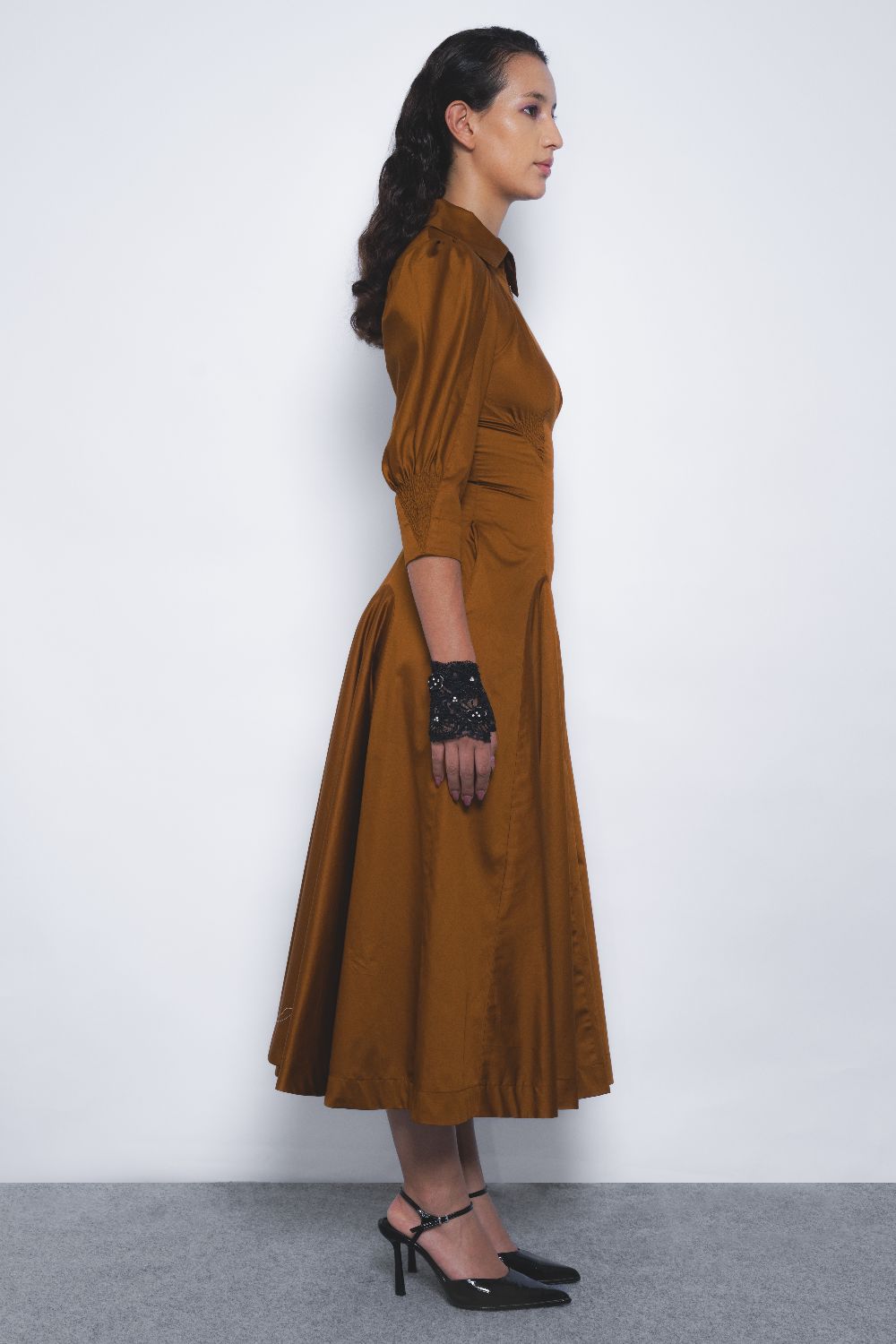 Crafted in rich cotton satin, this garment exudes the feminine form in a soft sculptural silhouette.Panelled construction contours the body, complemented by a voluminous hemline and softly structured sleeves.