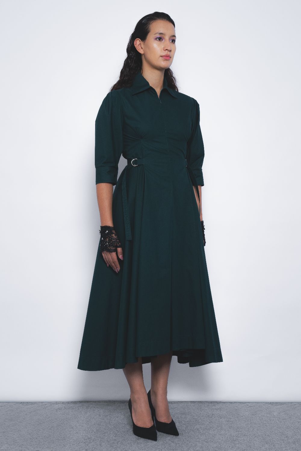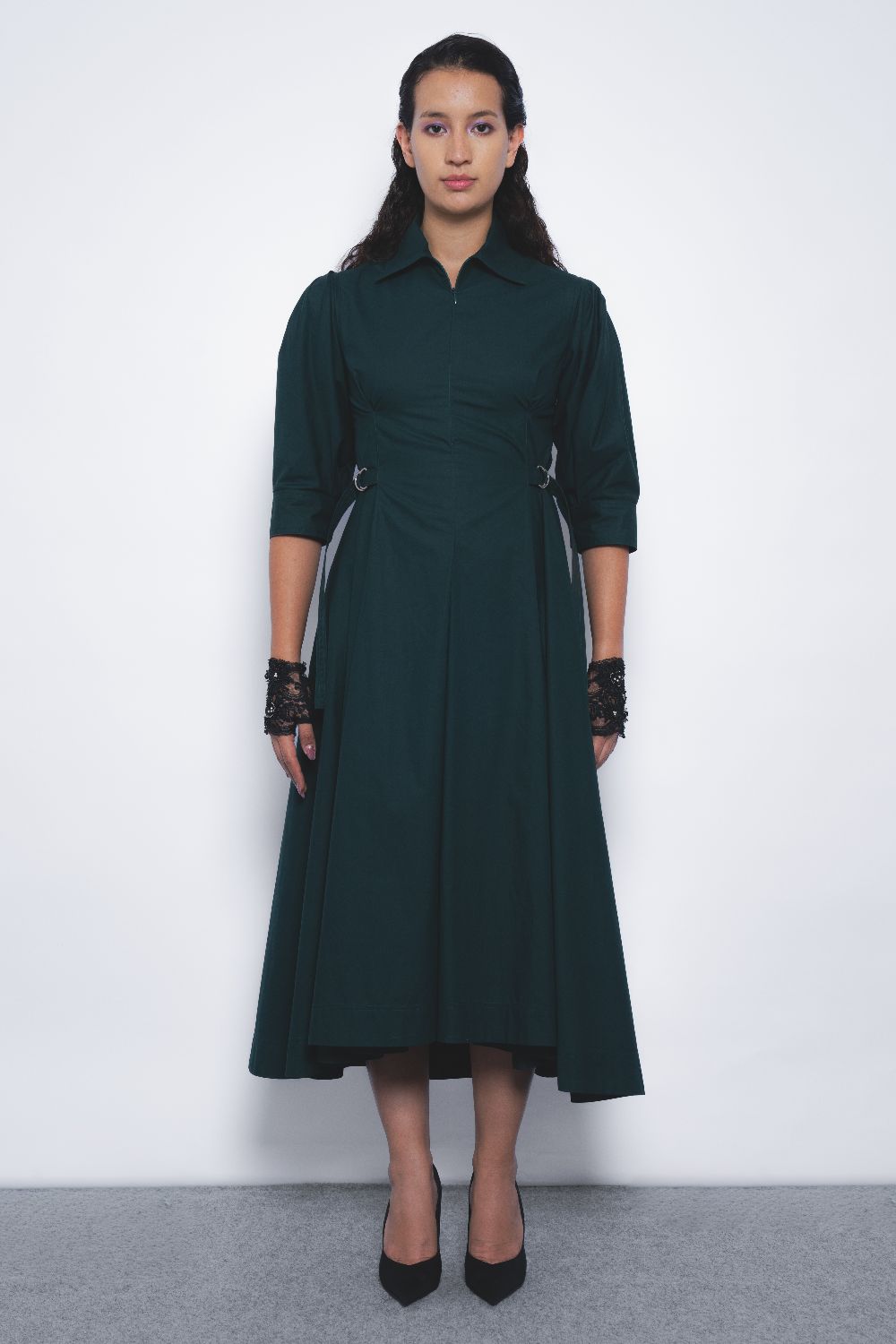 This classic silhouette, featuring a voluminous hemline and crafted in rich cotton poplin, exudes elegance with a softly structured form.