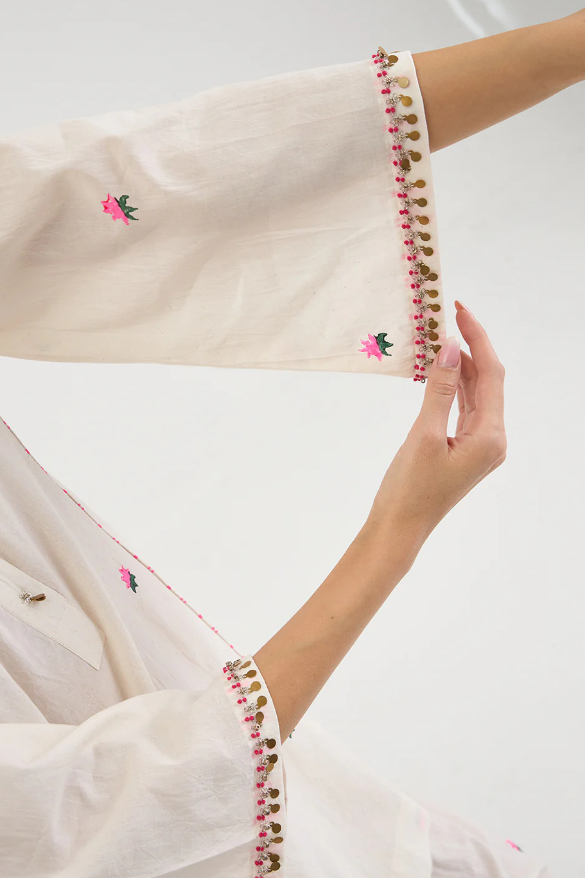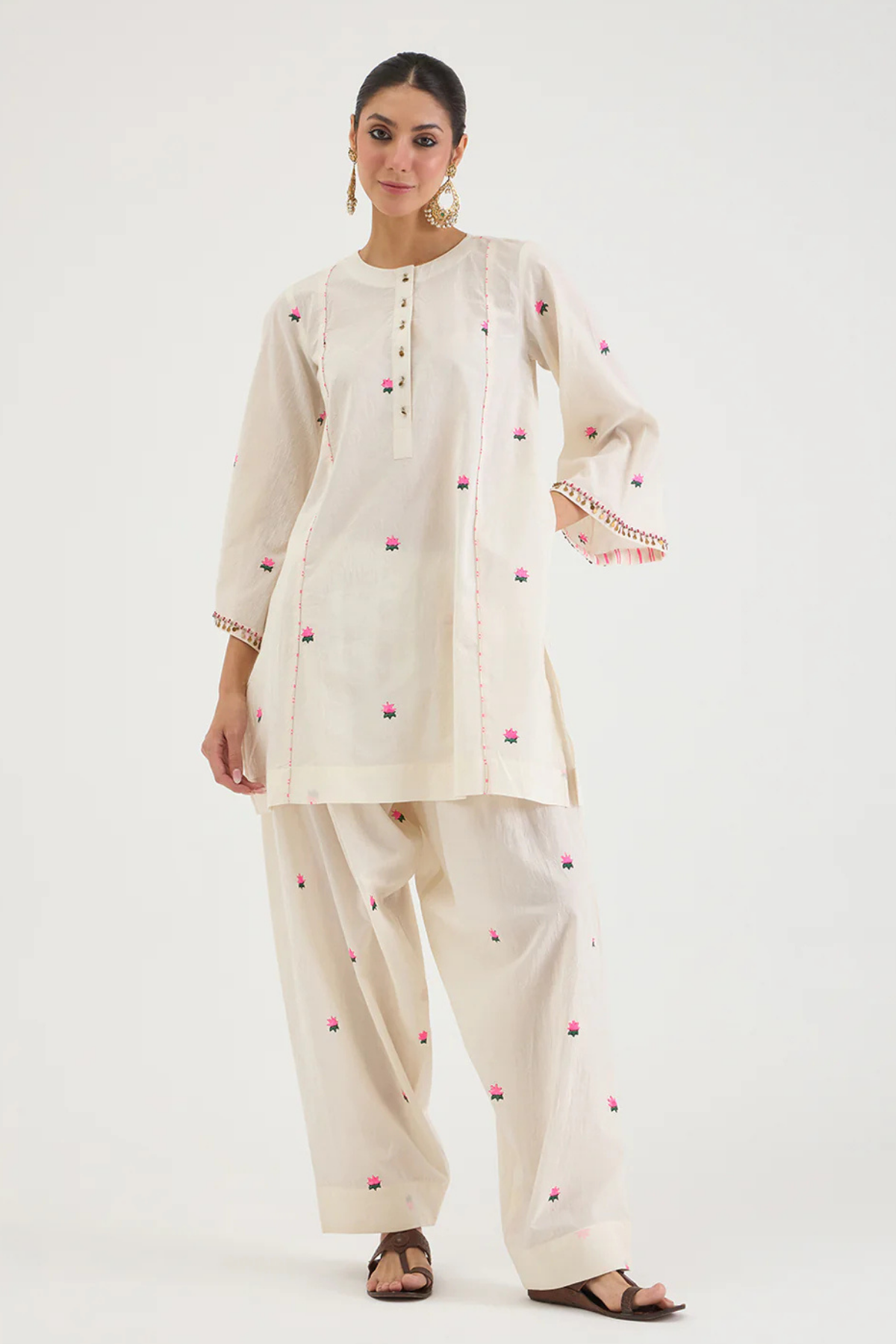 At Canvas & Weaves, we see Aavidi as part of a larger conversation about what it means to dress with intention. These are pieces for women who desire ease without erasing elegance — garments that serve, move, and accompany rather than dictate. Aavidi’s kalidaar kurtas, finished with delicate sacha gota work, exemplify this balance. Classic lines meet modern restraint, pairing effortlessly with salwars adorned in thoughtful gota motifs.