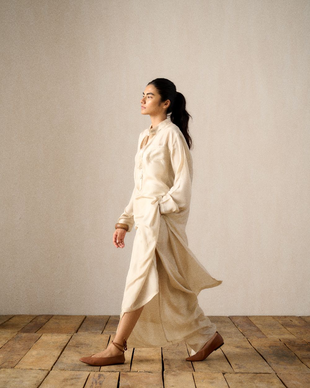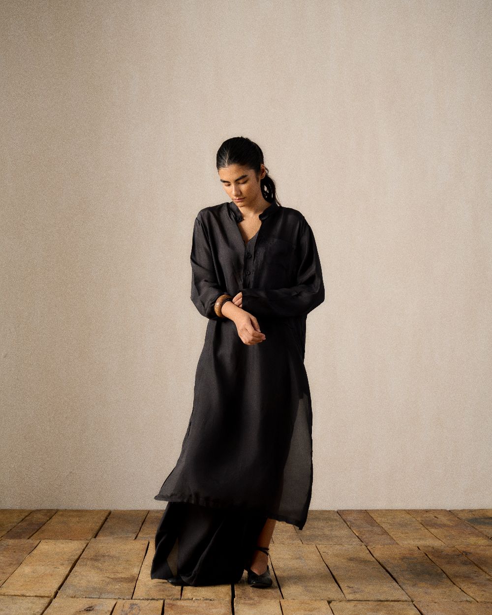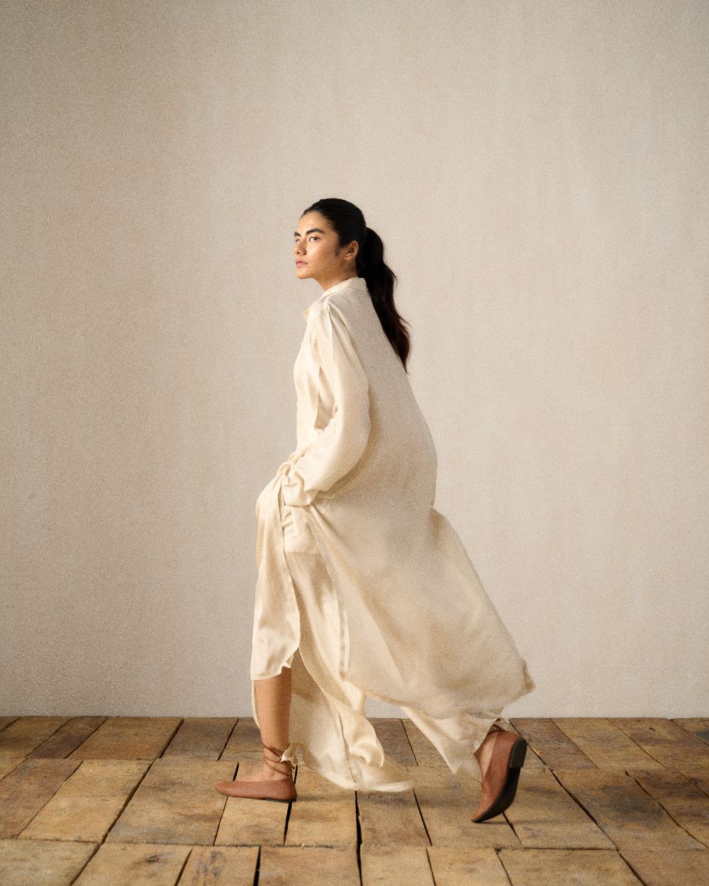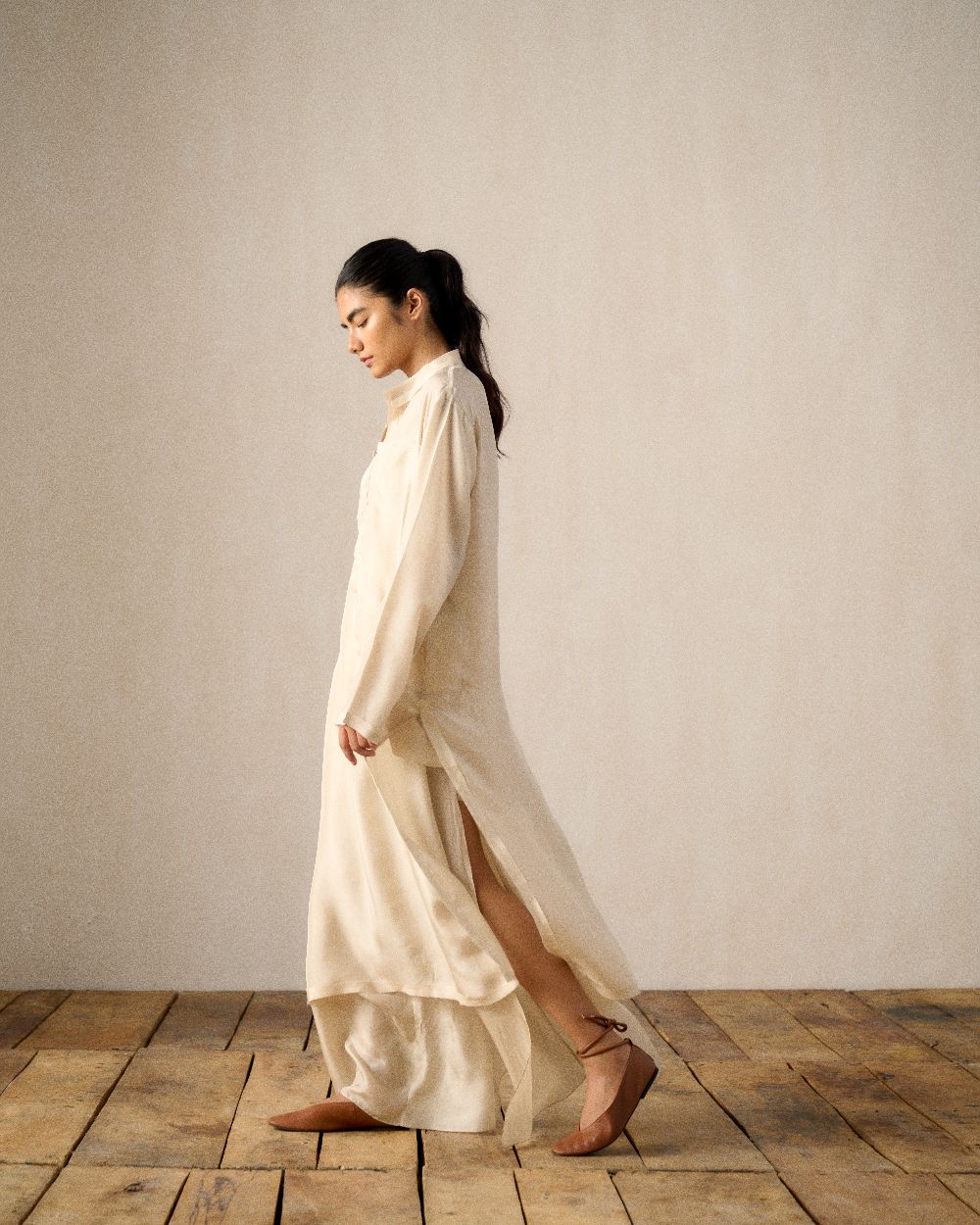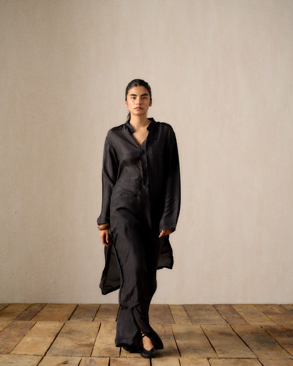 This kurta set is effortlessly sensual, draping fluidly over the body with grace. It balances artisanal detail with everyday ease, elegant enough to dress up, yet grounded enough for everyday luxury. A piece that flows seamlessly from day into night.