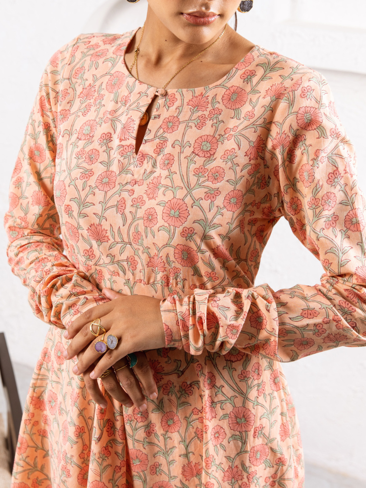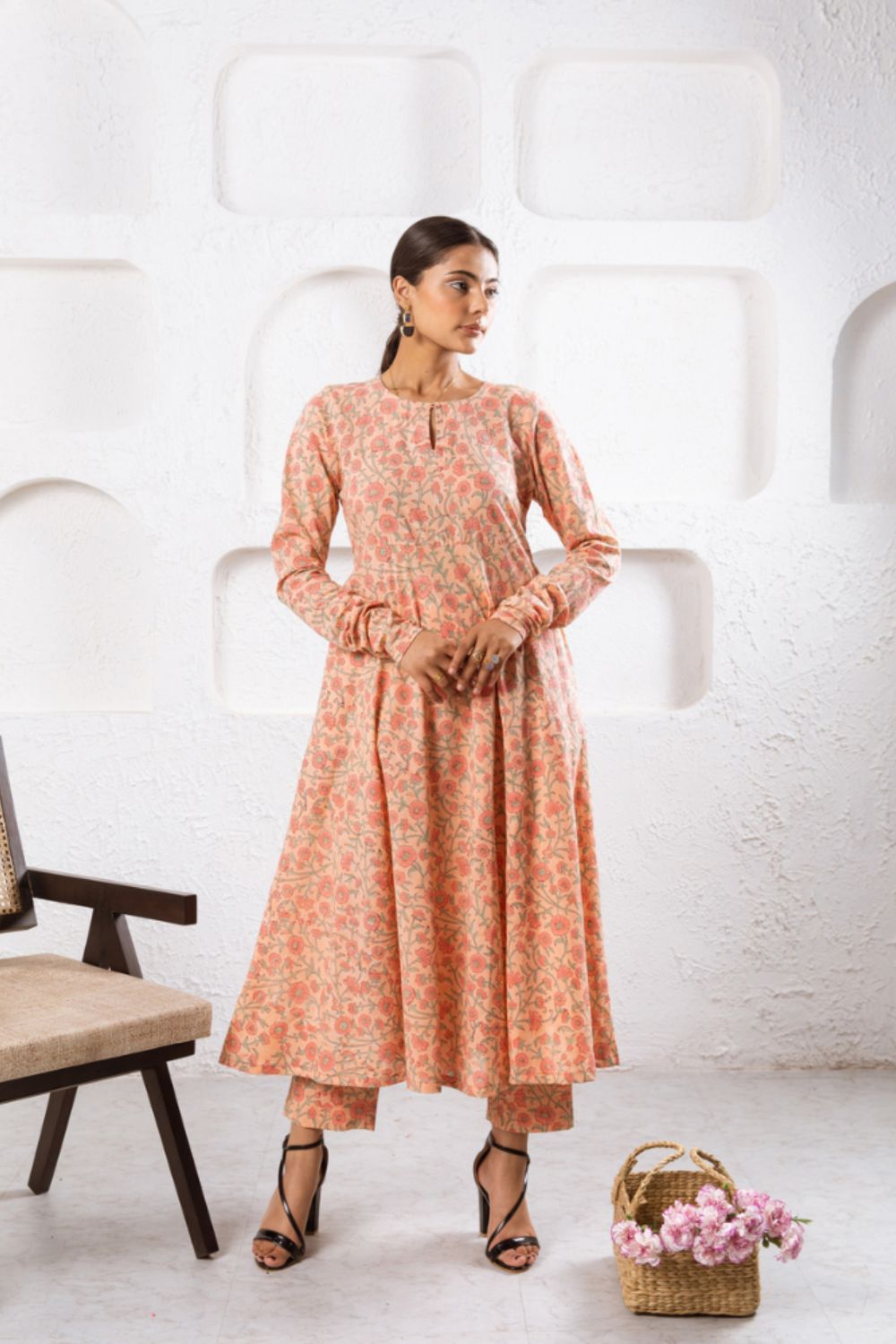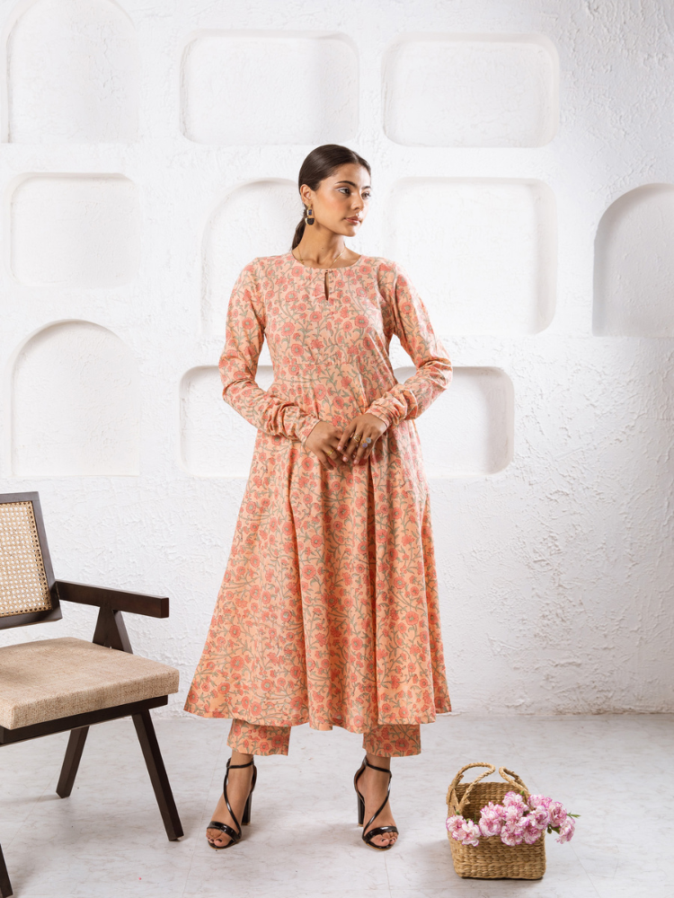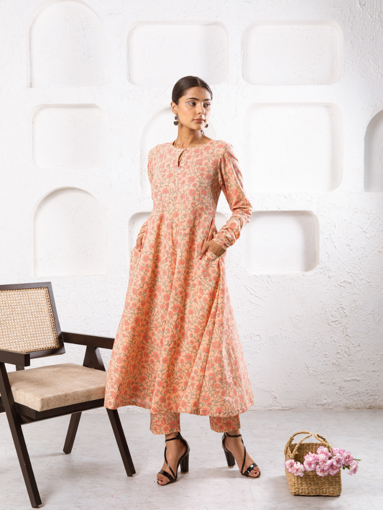 Delilah - Bright like the summer sun and beautiful like the first dawn of spring. Our love for kurta sets is never-ending. Feminine flowy and oh so summer. This cotton kurta set comes in a fit and flare silhouette with churidars sleeves and pockets. It's paired with matching straight pants