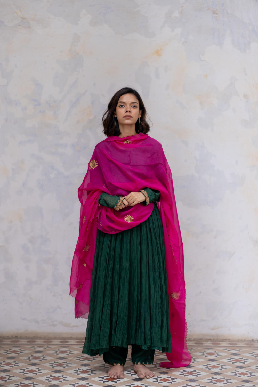 The label embraces the rich artisanal heritage of Mughal India through its offerings. The nizams and the Persians enamored the world with their own unparalleled craftsmanship. The intention is to mould that into timeless design through modern techniques and fluid silhouettes.