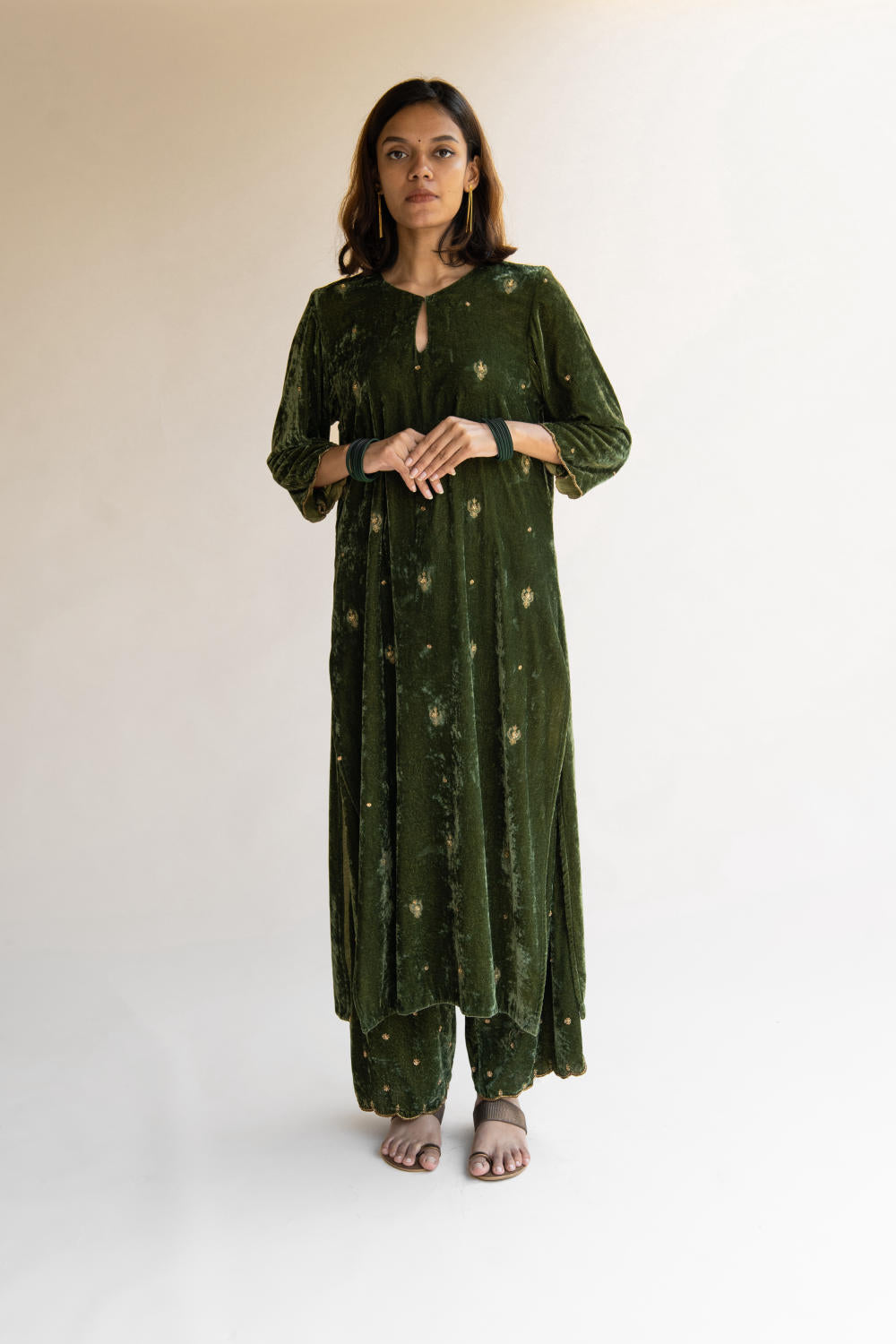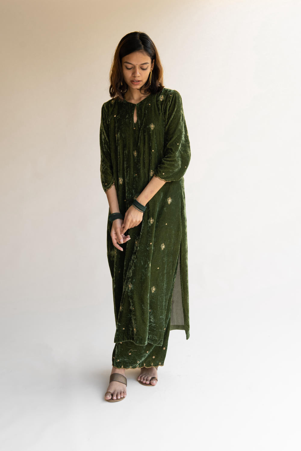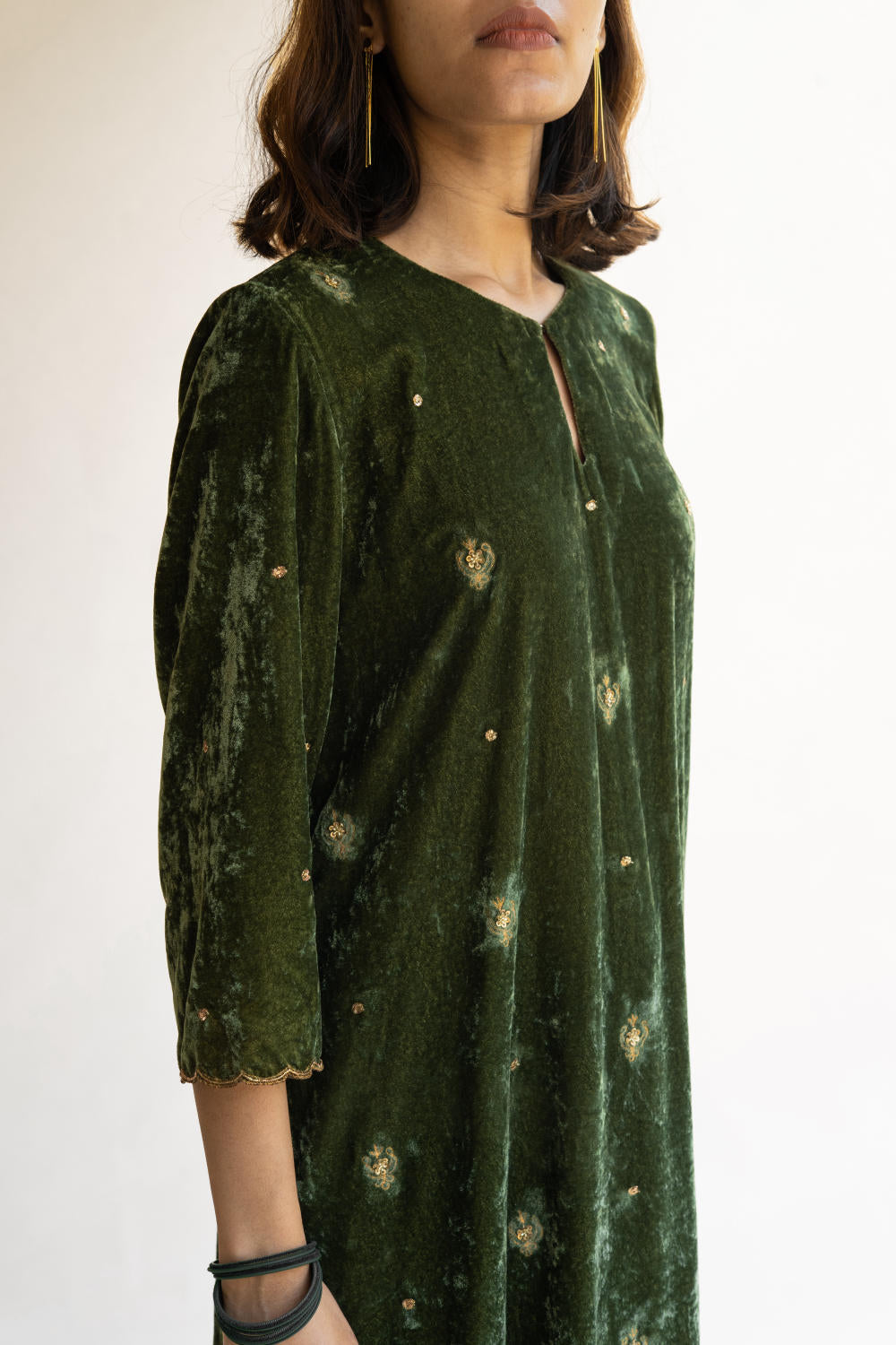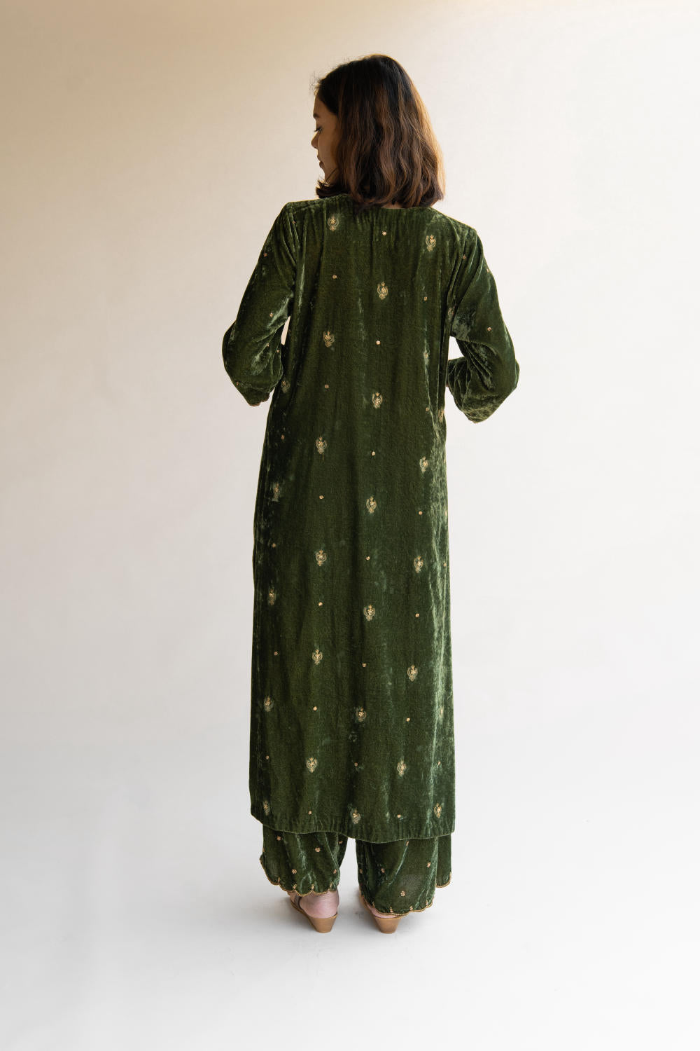 With velvet being the reason behind this ensemble's rich fall, it retains its soul and holds you close to your grounds.