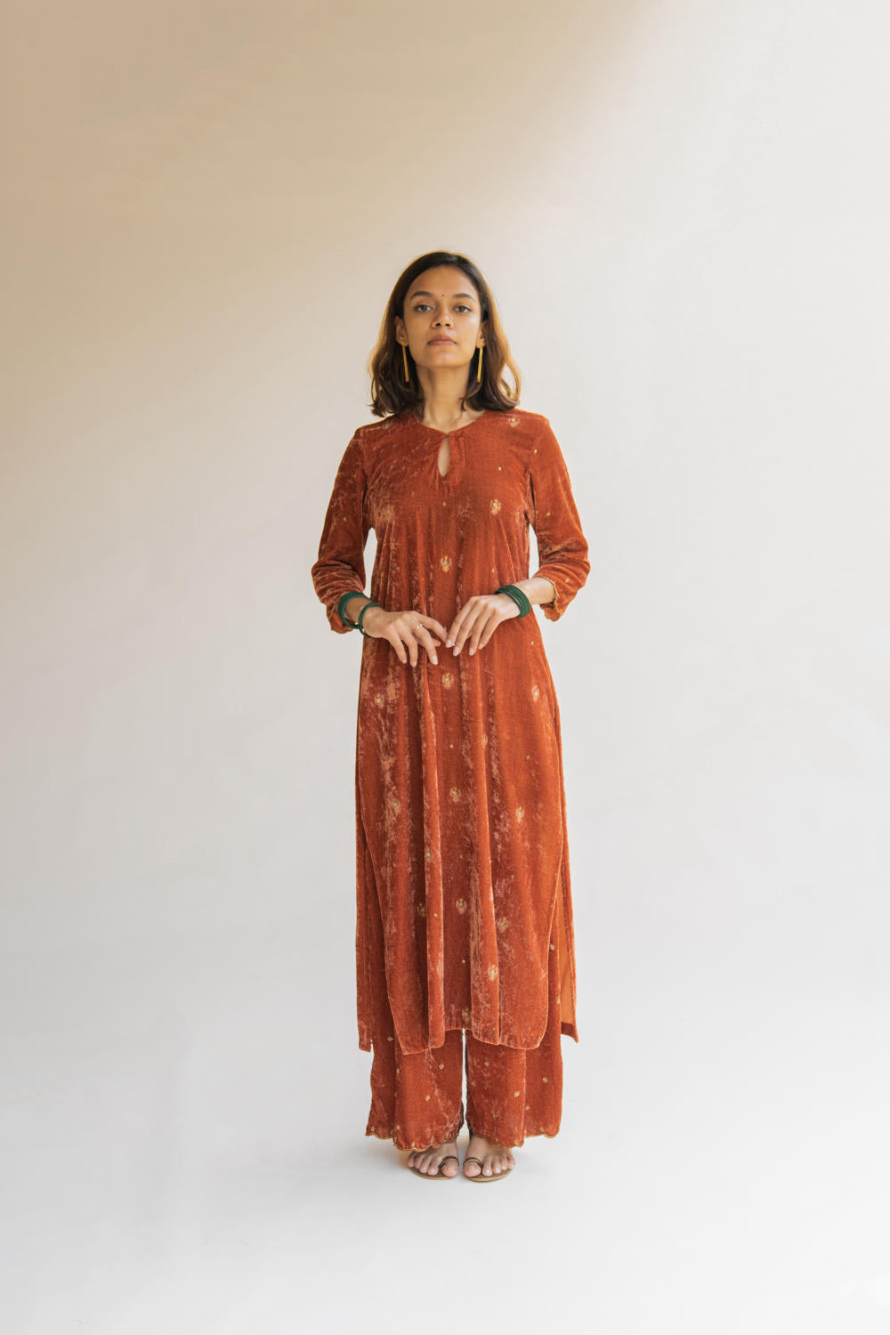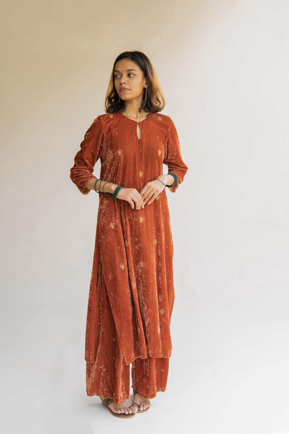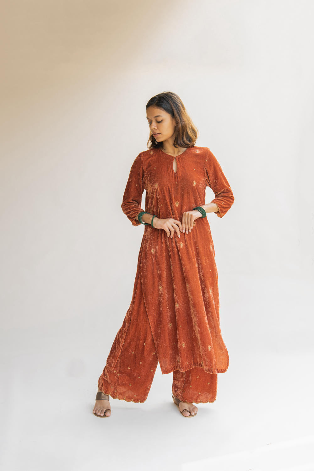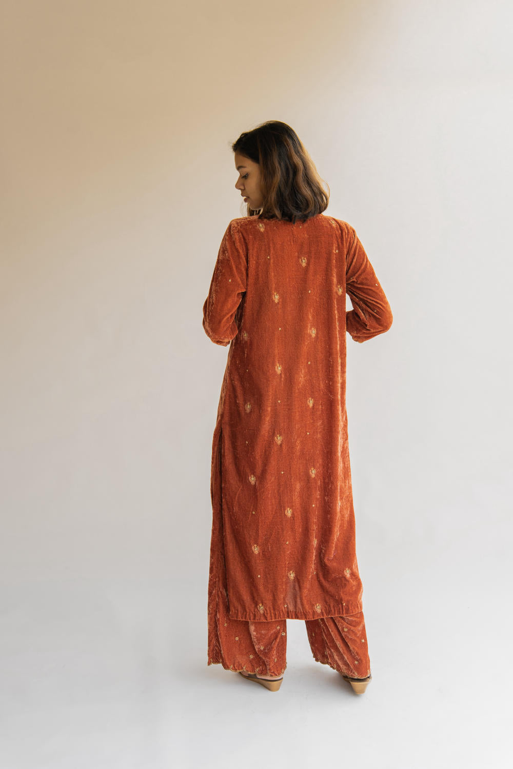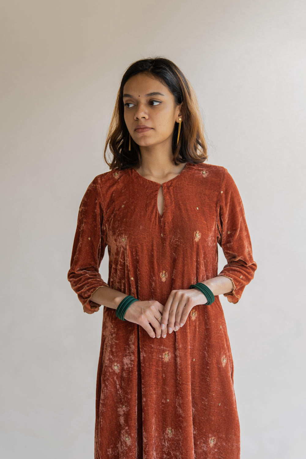 With velvet being the reason behind this ensemble's rich fall, it retains its soul and holds you close to your grounds.