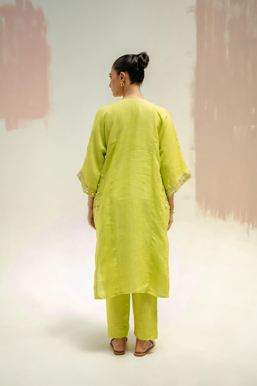Embroidery Details: Hand-embroidered cuffs, adorned with sequins and threadwork