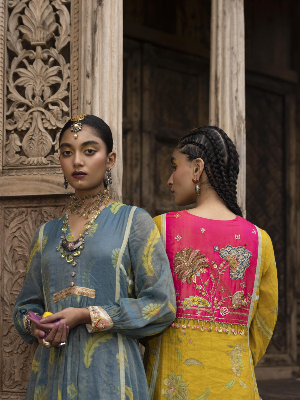Trained at NIFT and NIFD, the sisters bring technical rigour to their craft: every garment is shaped with intention, from the drape of the fabric to the finesse of the motif. What defines RajiRamniq is this balance — expressive without excess, deeply Indian yet cosmopolitan in its sensibility.