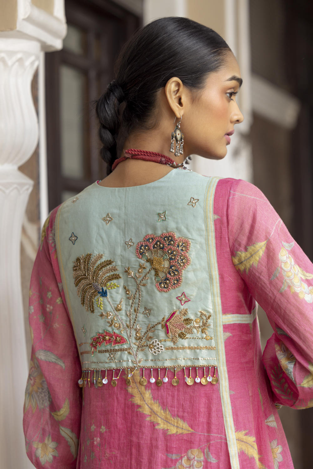 Their work is an ode to handcrafted Indian design — rooted in traditional embroidery techniques like zardozi, dabkaa, and fine threadwork, yet shaped into silhouettes that feel refreshingly contemporary. Clean cuts, relaxed forms, pure fabrics, and a distinctive palette come together to create pieces that travel seamlessly from India to Singapore and beyond.