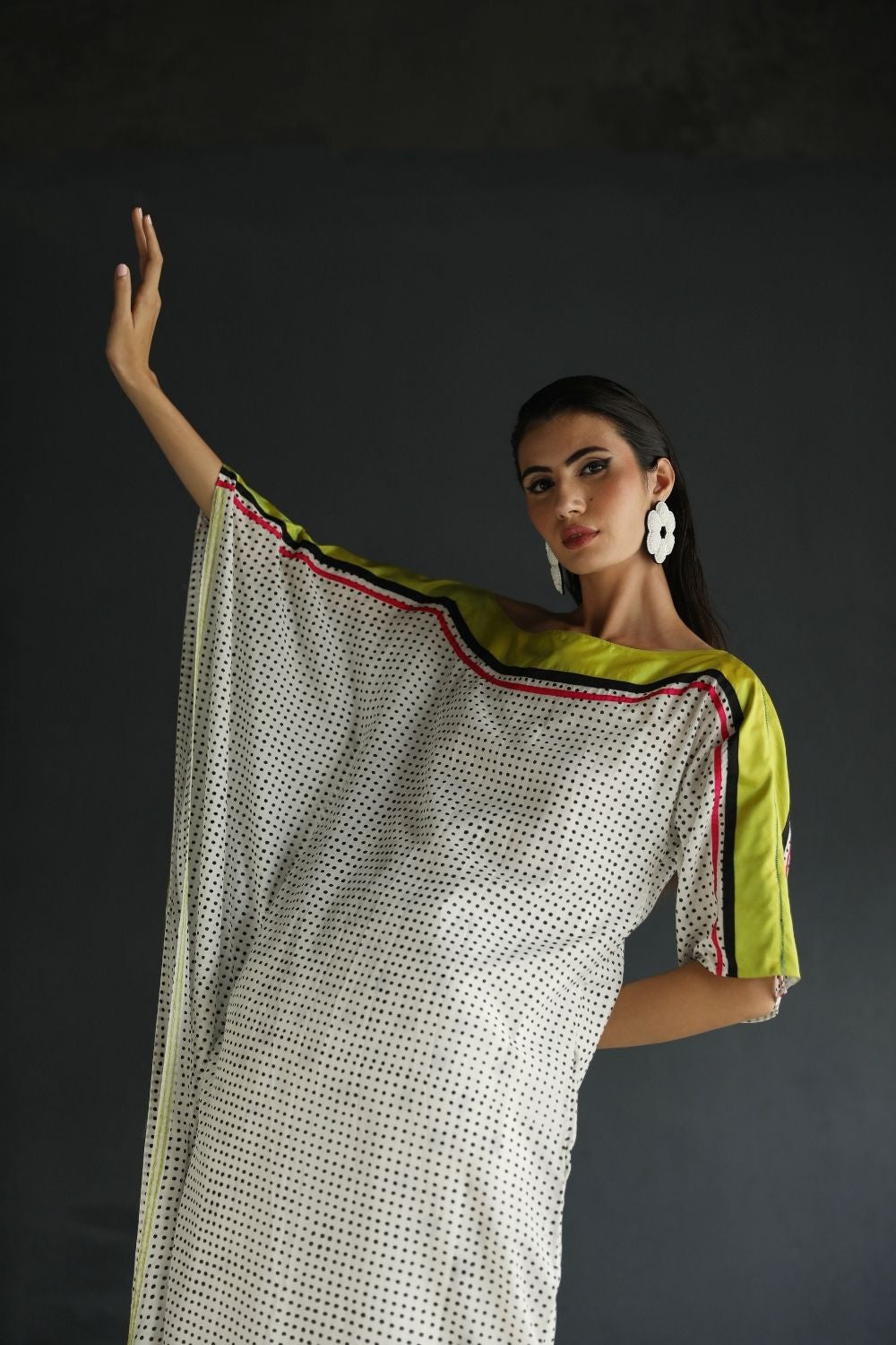 Their work is an ode to handcrafted Indian design — rooted in traditional embroidery techniques like zardozi, dabkaa, and fine threadwork, yet shaped into silhouettes that feel refreshingly contemporary. Clean cuts, relaxed forms, pure fabrics, and a distinctive palette come together to create pieces that travel seamlessly from India to Singapore and beyond.